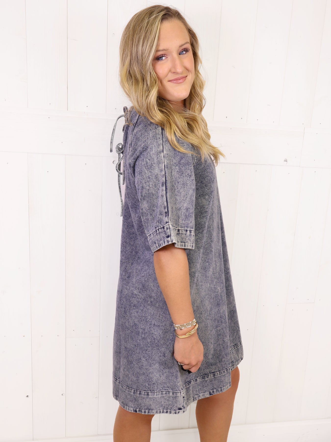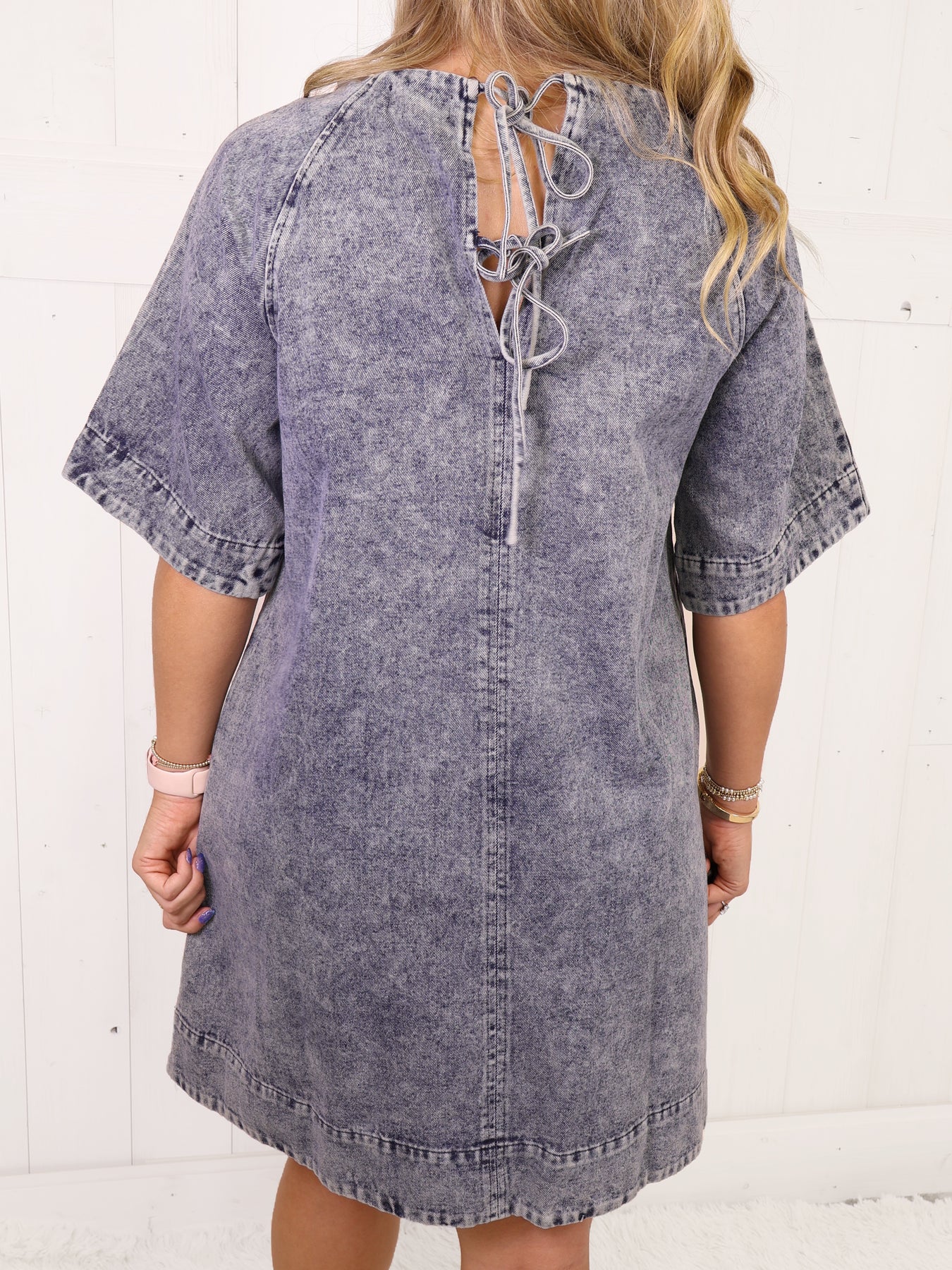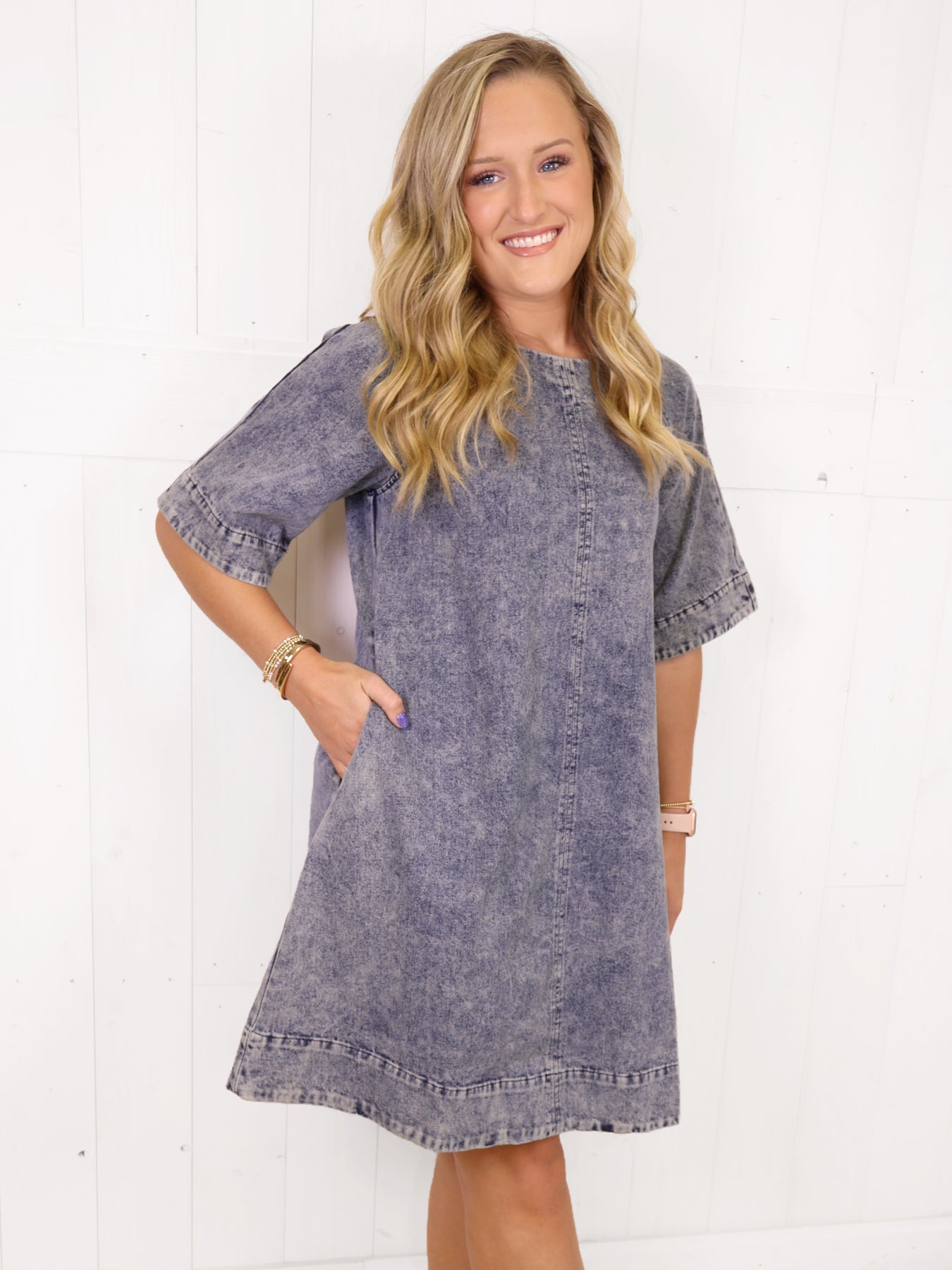 This denim dress with swing hem and pockets offers a flattering silhouette and convenient storage for your essentials. Crafted from durable denim, it provides reliable comfort and style. Perfect for a casual day out or dressed up for a night out, this versatile piece is a wardrobe must-have for any fashion-forward individual.