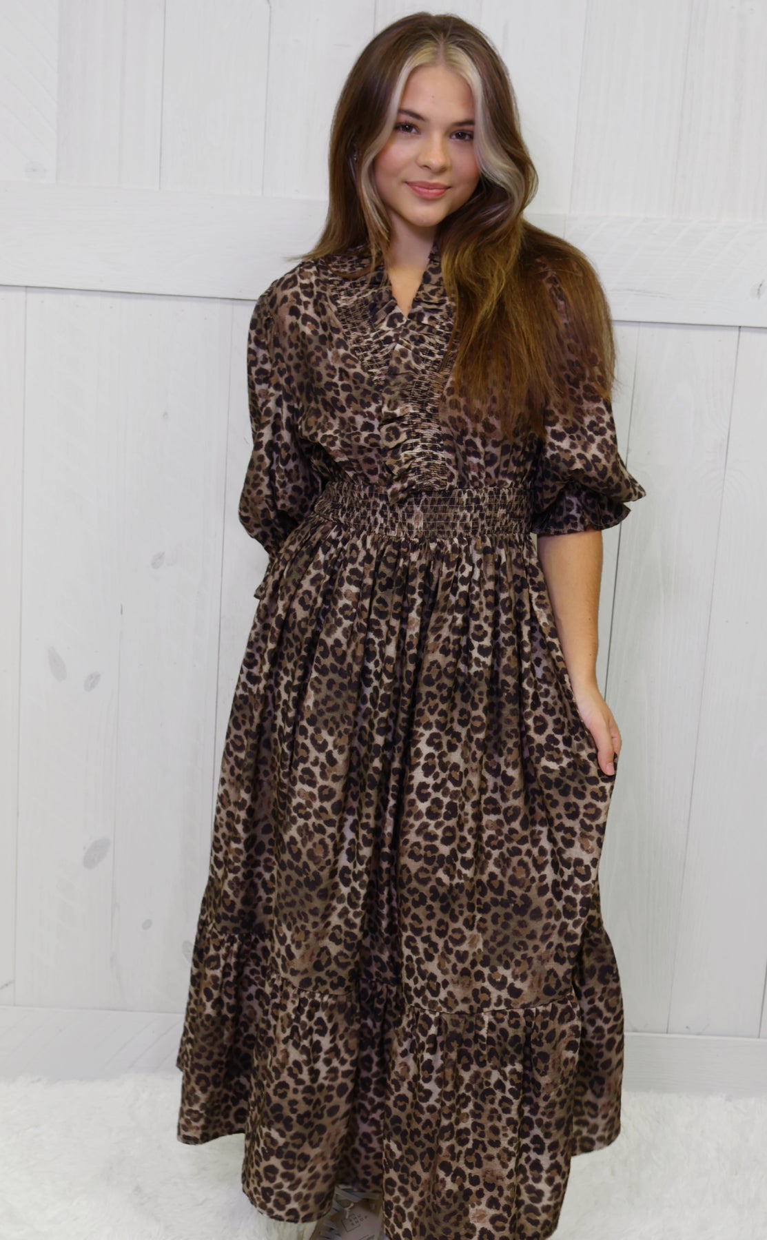 Introducing the Umgee Cheetah Ruffle Neck Midi Dress - a stylish and comfortable dress for any occasion. Made with high-quality fabric, this versatile dress is perfect for both casual and formal events. The ruffle neck adds a touch of elegance while the midi length provides a flattering silhouette. Upgrade your wardrobe with this must-have dress.