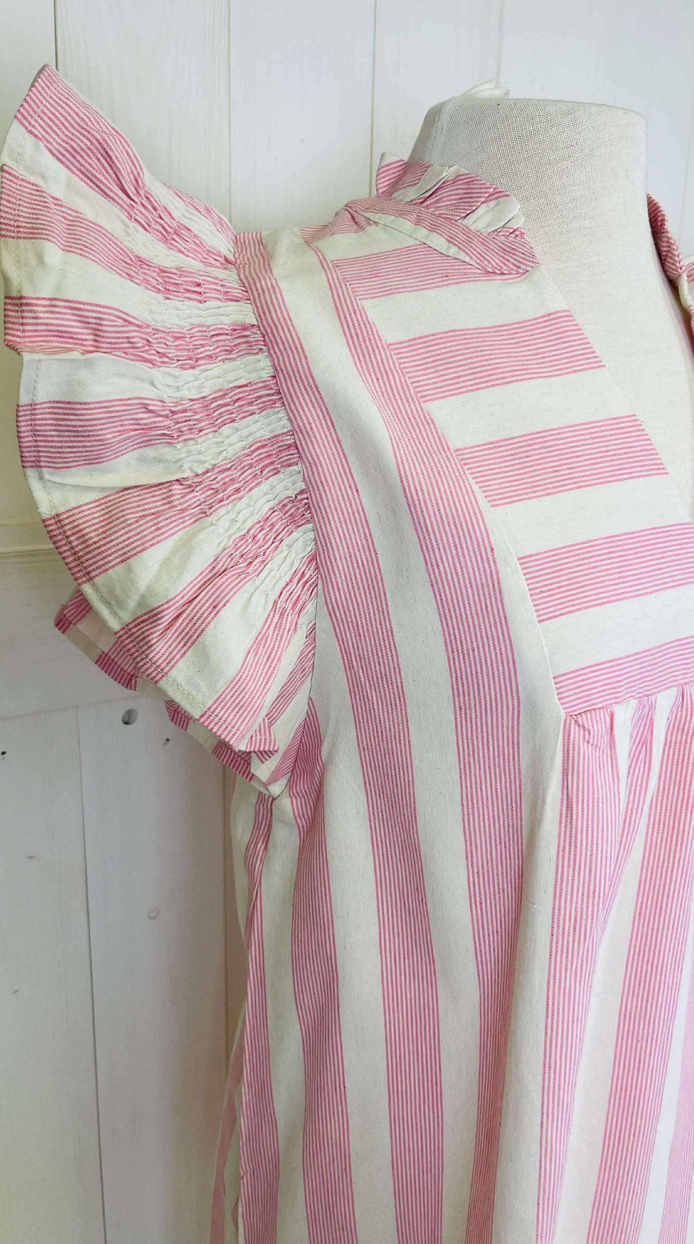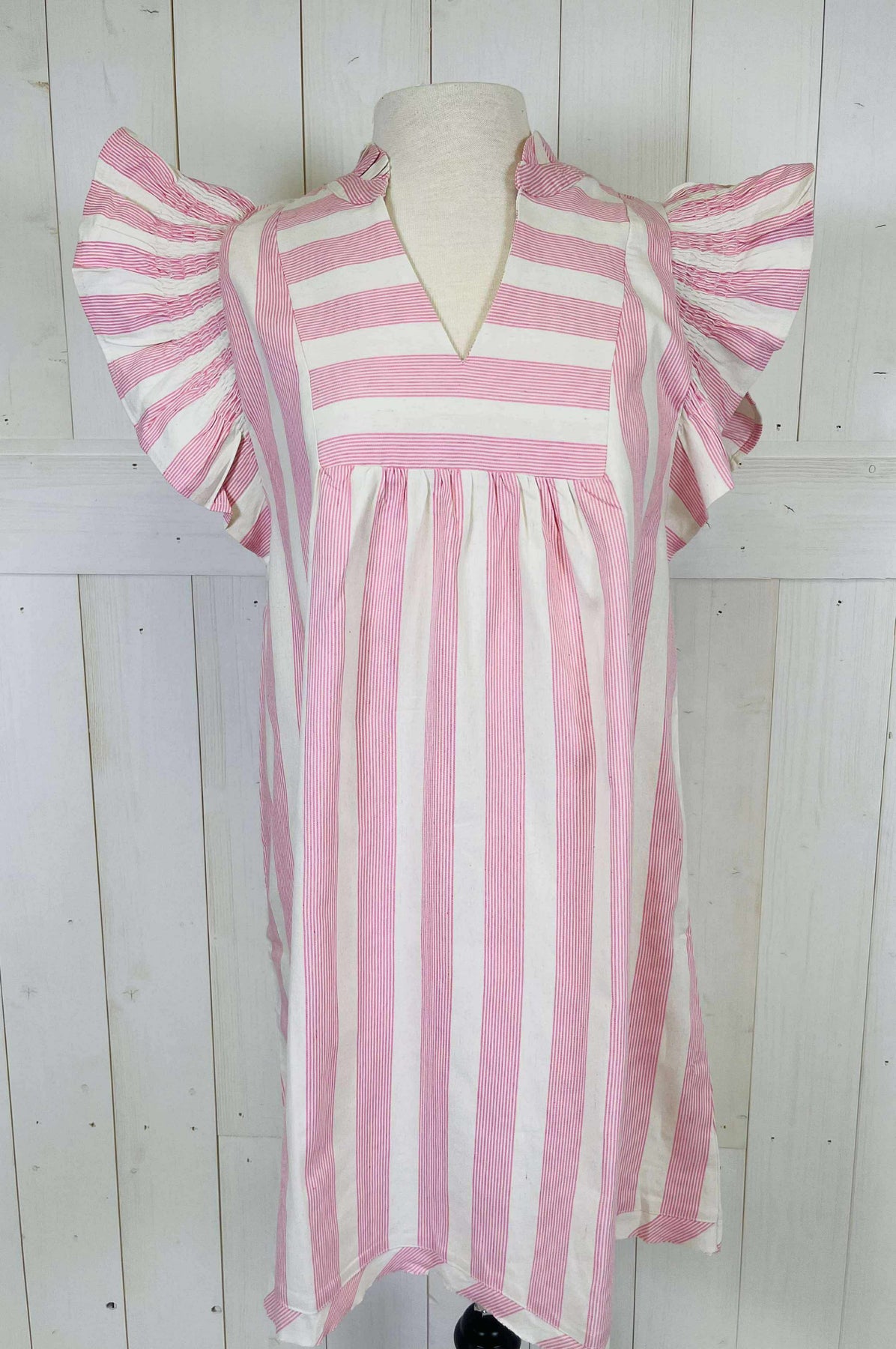 This Umgee dress features a beautiful pink and white stripe pattern. Made with high-quality materials, it is comfortable and stylish. Perfect for any occasion, it will add a touch of elegance to your wardrobe. The timeless design and flattering fit make it a must-have in any fashion lover's collection.