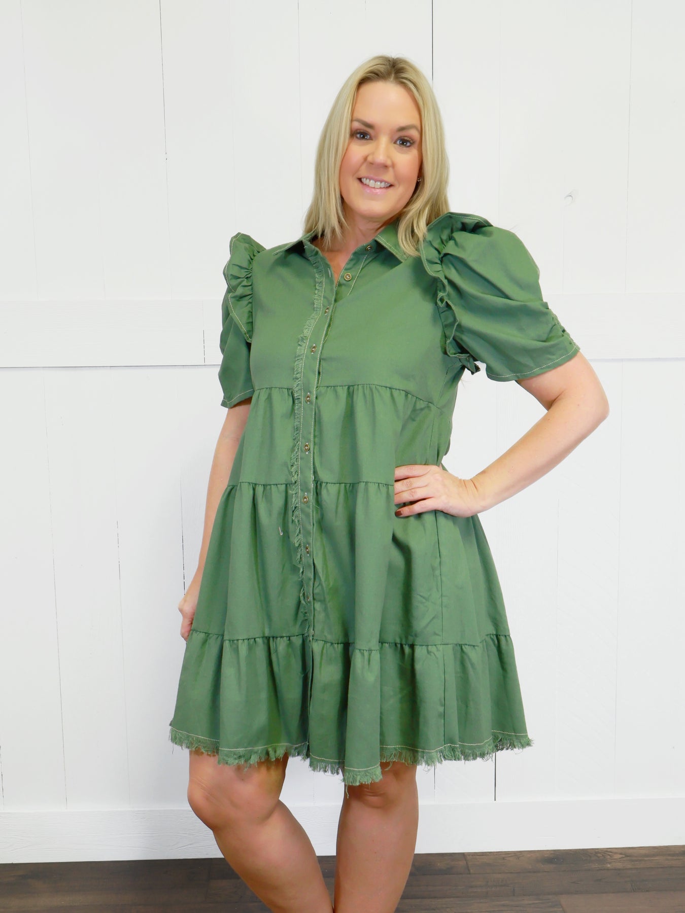 This Women's GiGiO Olive Denim Button Dress is a stylish and versatile addition to any wardrobe. Made with high-quality denim, it is both durable and comfortable to wear. Its button-down design adds a touch of elegance, making it perfect for both casual and formal occasions. Stay fashionable and chic with this must-have dress.