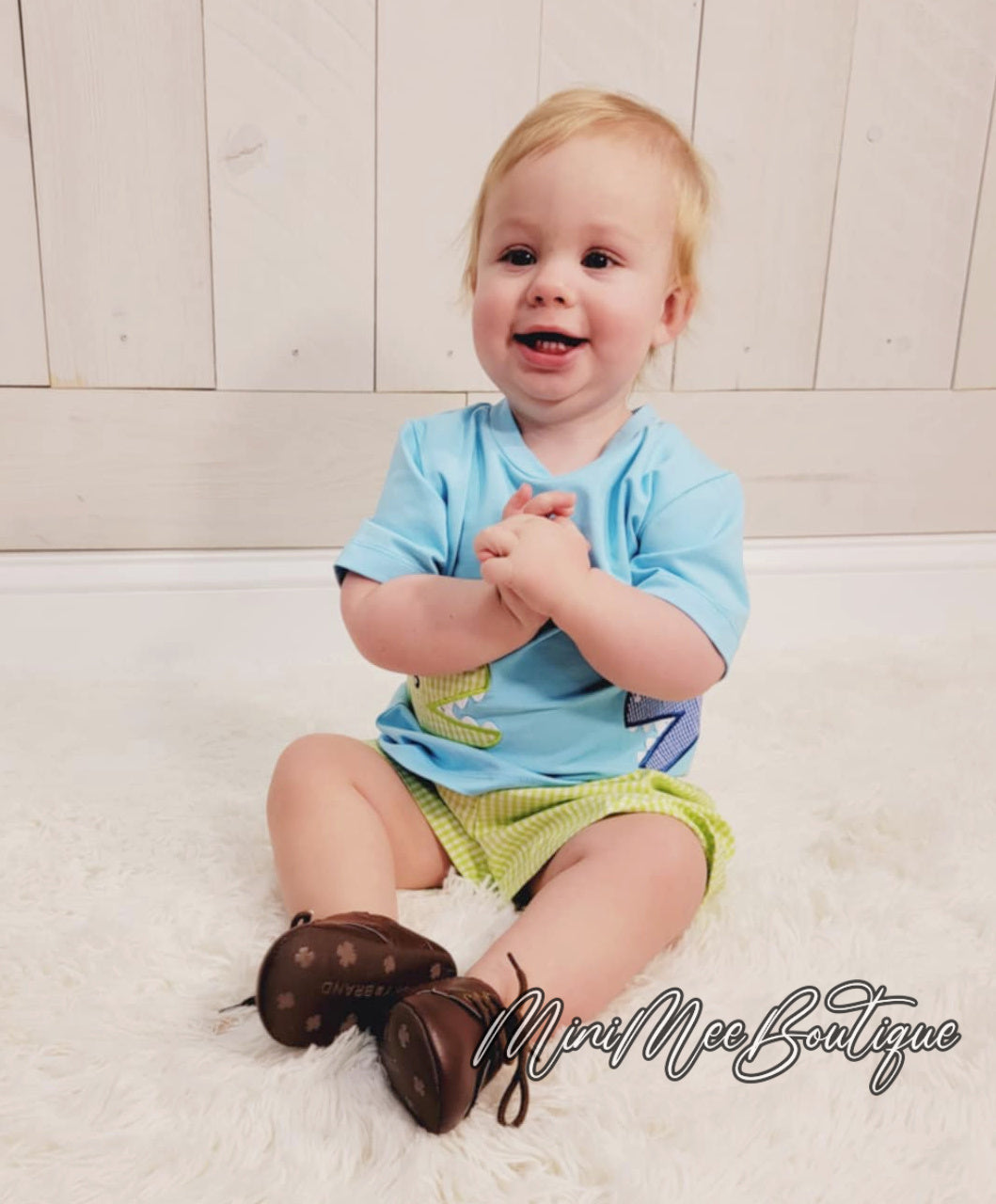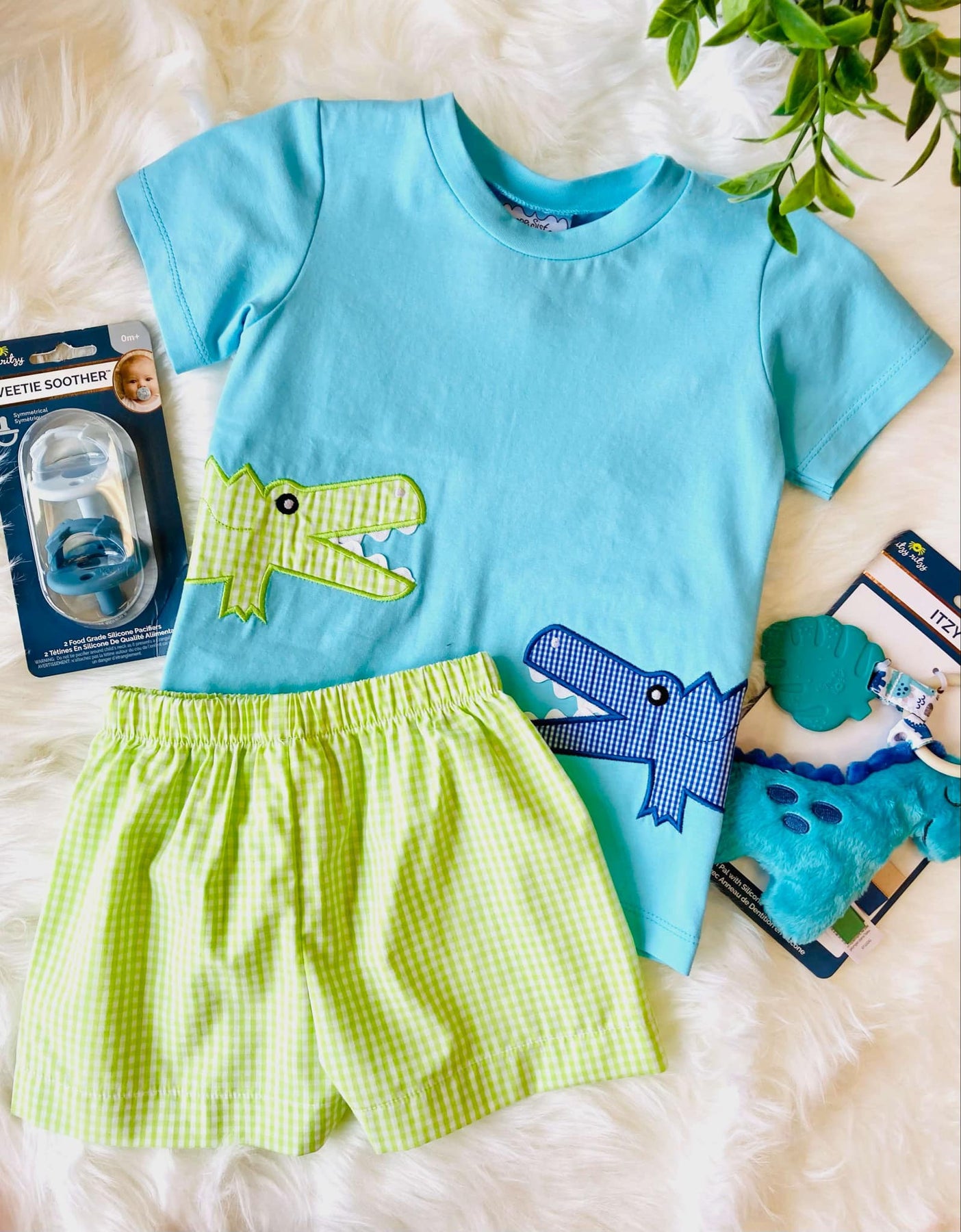 Dress your little boy in style with this adorable Crocodile 2 piece set. Perfect for playtime or special occasions, this set is sure to make your little one stand out!