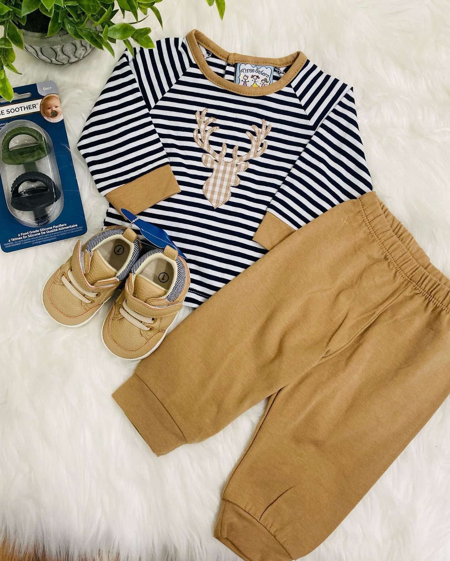 Dress your little boy in style with this charming Deer 2 Piece Set, featuring a top and pants for a complete outfit. Perfect for any occasion, this set combines comfort and cuteness effortlessly.