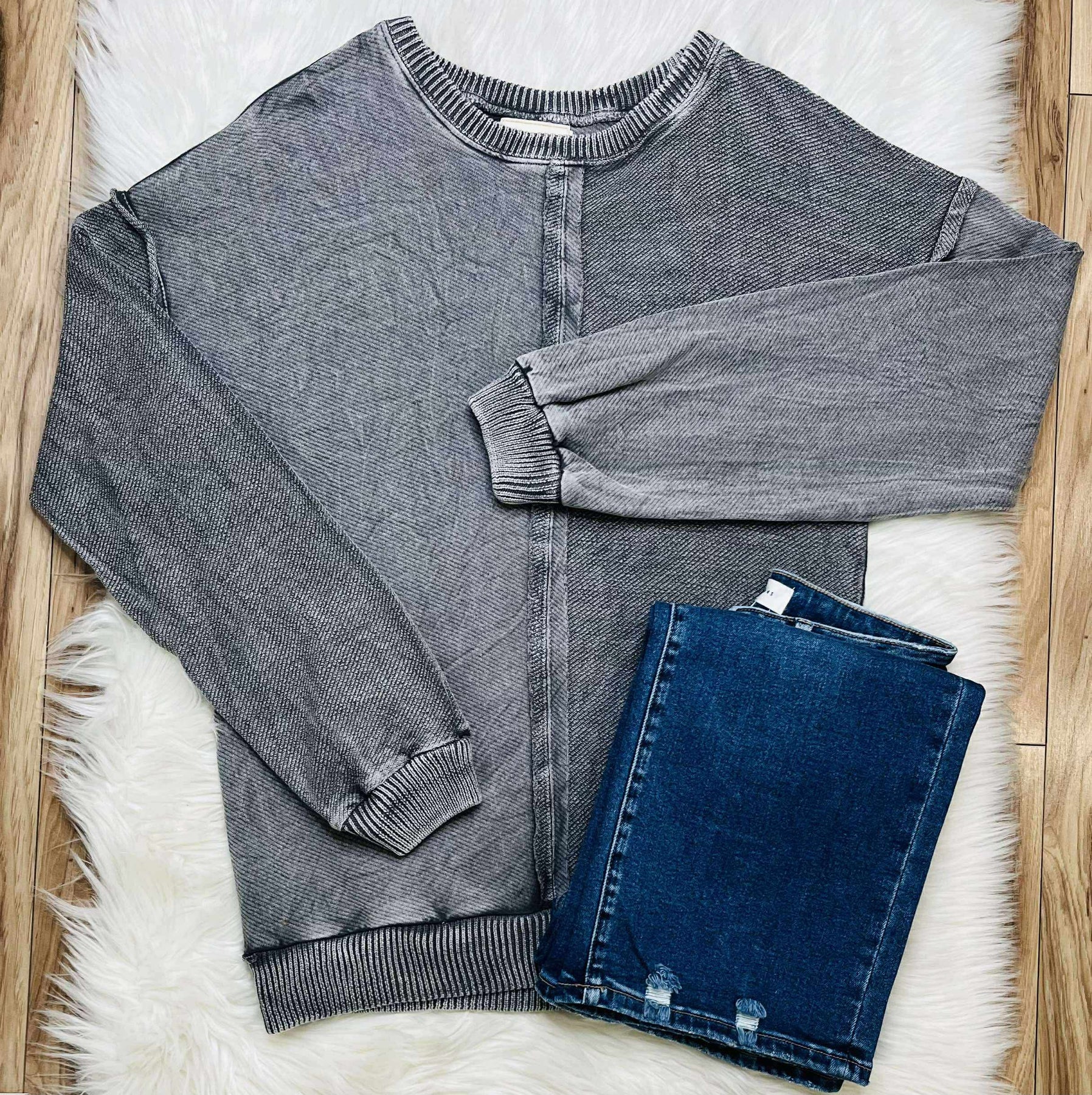 This Women's Acid Wash Raw Hem Sweater in Washed Black is the perfect addition to your winter wardrobe. The acid wash adds a unique touch to this stylish sweater, while the raw hem adds a casual, laid-back vibe. Made with high-quality materials, this sweater offers both comfort and durability.