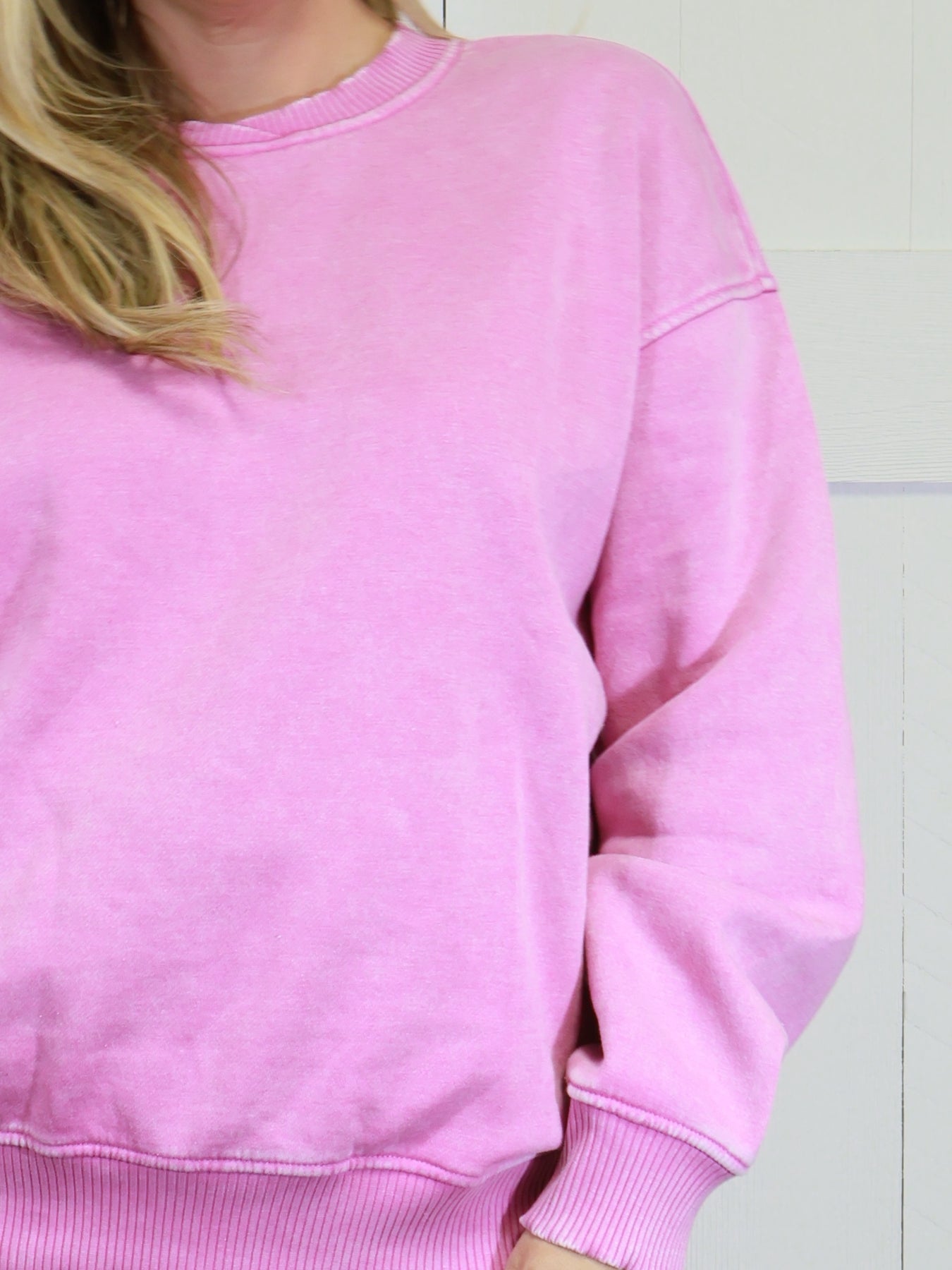 Zenana Acid Wash Oversized Fleece Pullover Sweater Mauve Basic
