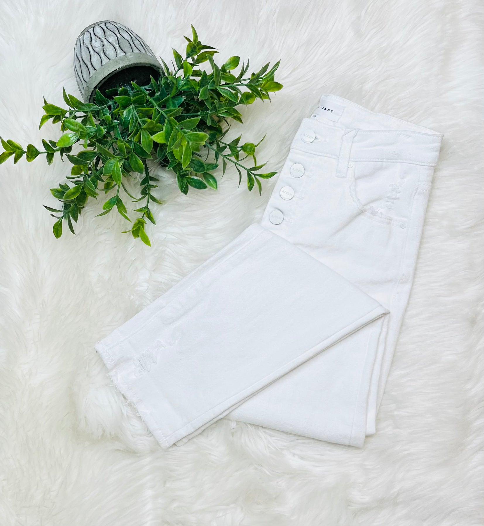 The Risen Button Fly White Jeans 5295 feature a minimum distress design, ensuring a clean and polished aesthetic. This construction allows for versatility in styling while maintaining durability and comfort. The jeans are suitable for various occasions, offering a timeless look with practical wearability.