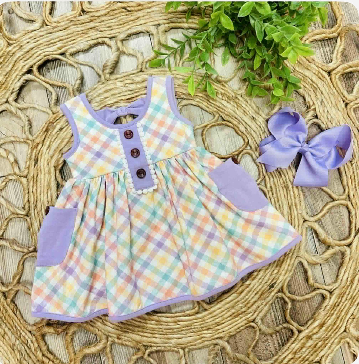 This stylish dress will be a favorite in your little girl's wardrobe. With a classic plaid design and convenient pockets, it's perfect for any occasion. Made with high-quality materials, it offers both comfort and durability. Keep your little one looking adorable and feeling comfortable with this charming dress.