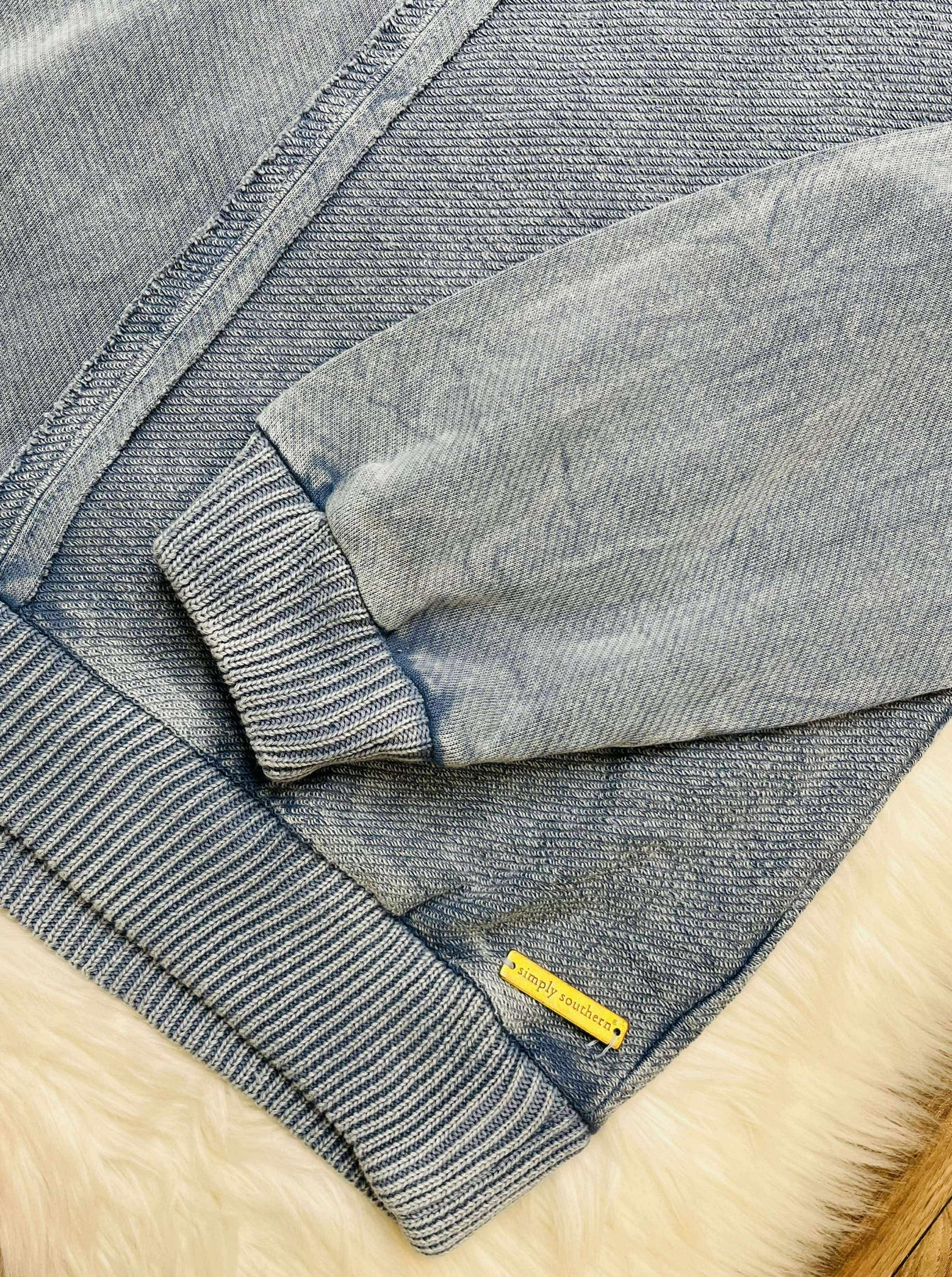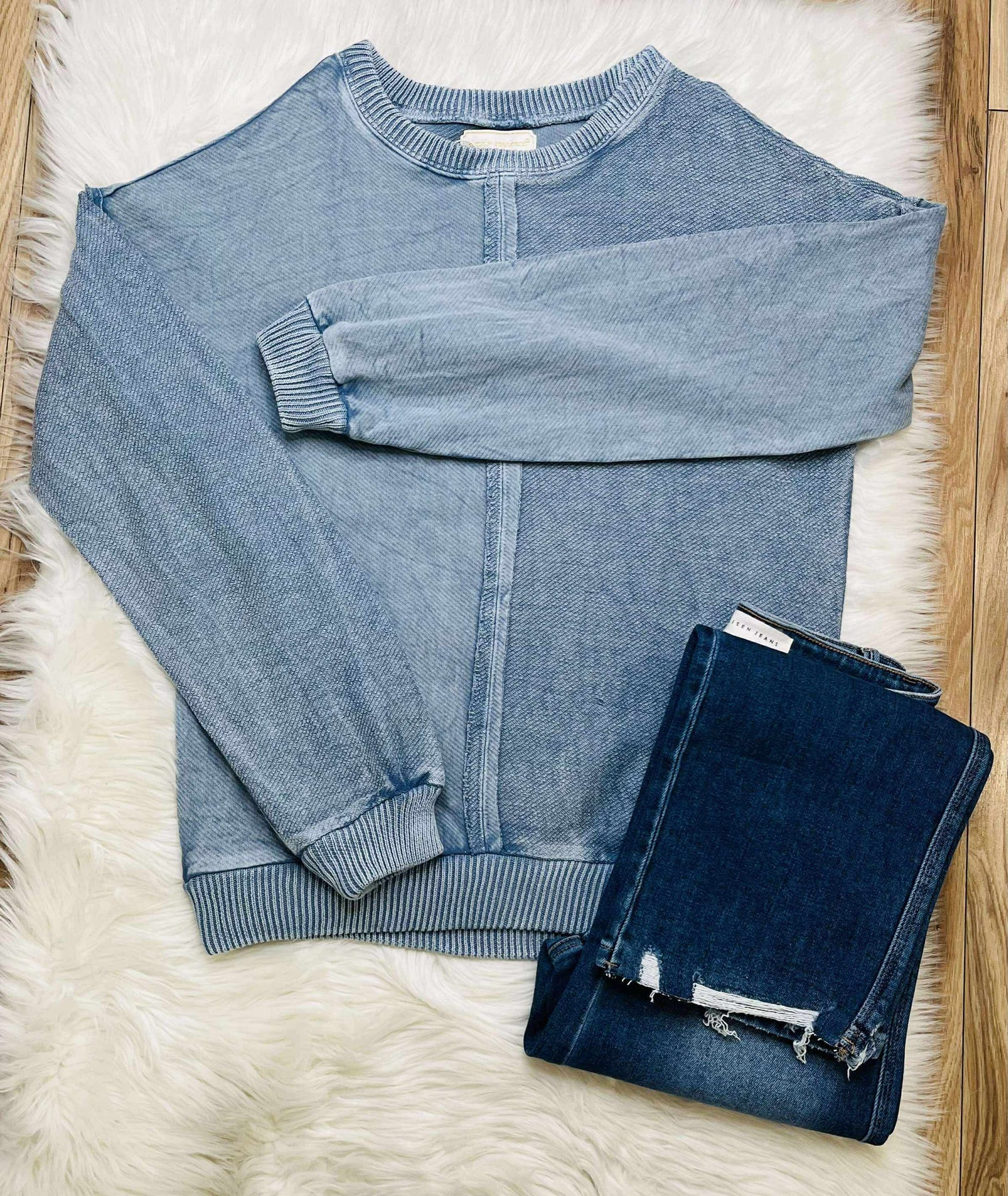 This Women's Acid Wash Raw Hem Sweater in Washed Blue is the perfect addition to your winter wardrobe. The acid wash adds a unique touch to this stylish sweater, while the raw hem adds a casual, laid-back vibe. Made with high-quality materials, this sweater offers both comfort and durability.