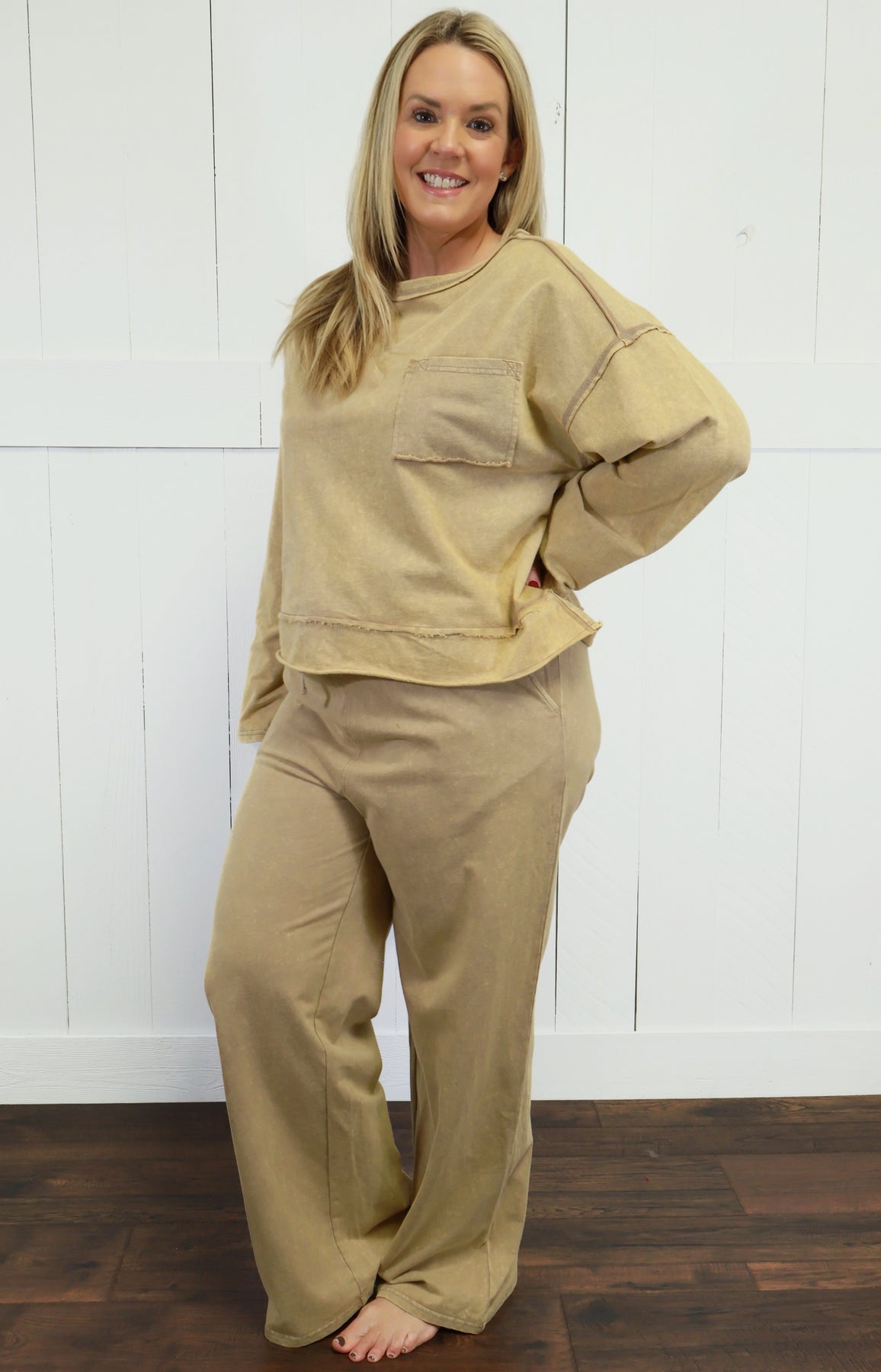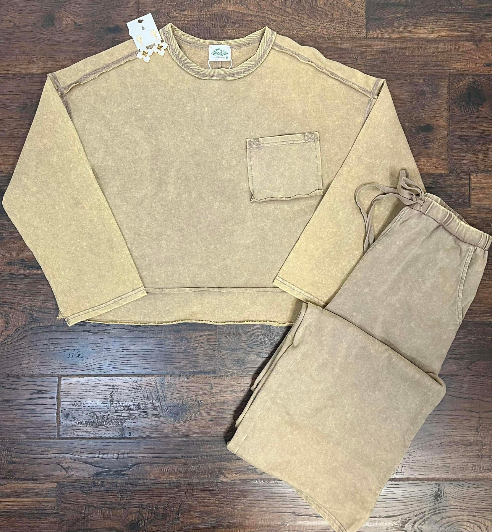 Elevate your loungewear game with our Women's Acid Wash Two Piece Lounge Set. This set includes a comfortable lounge top and bottom, perfect for cozy days at home. Made with high-quality materials and an on-trend acid wash design, this set will keep you looking stylish and feeling relaxed.