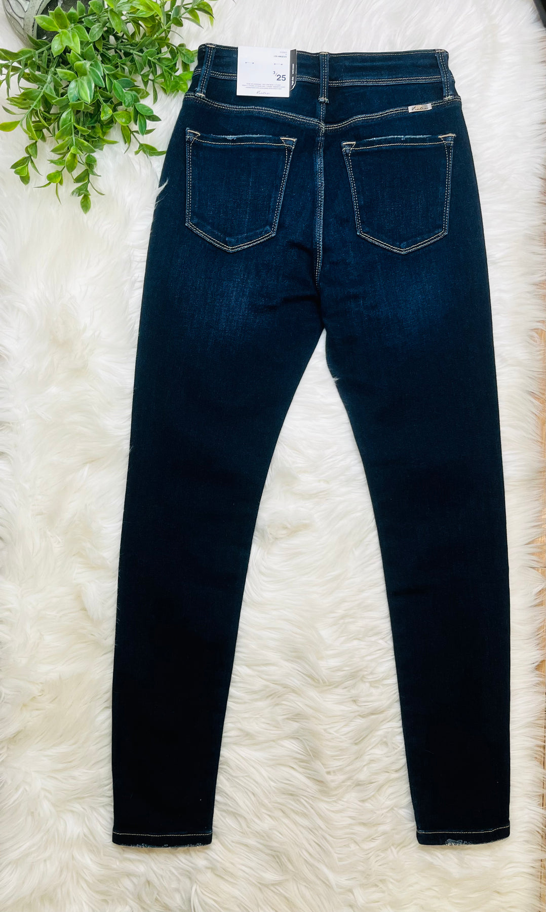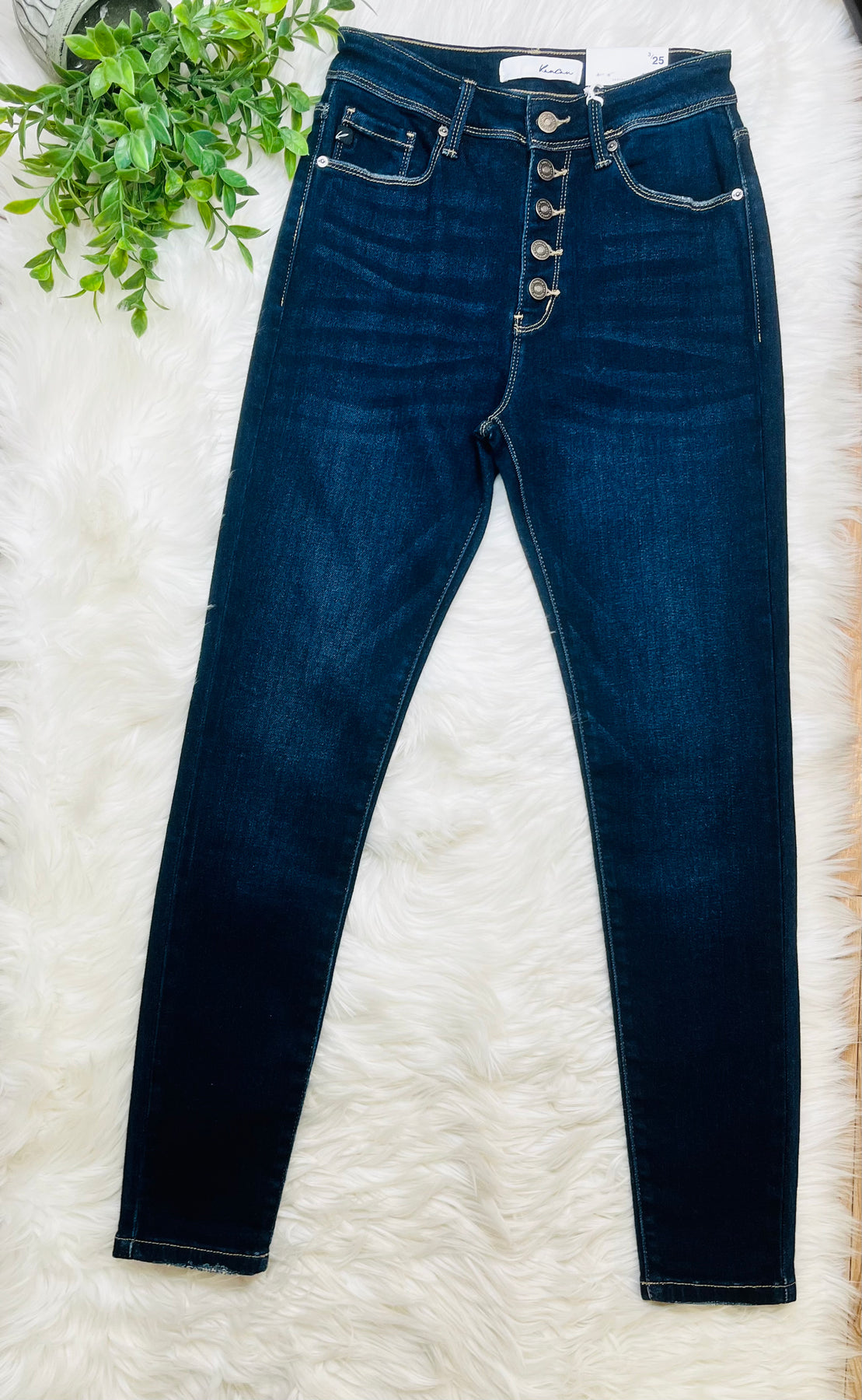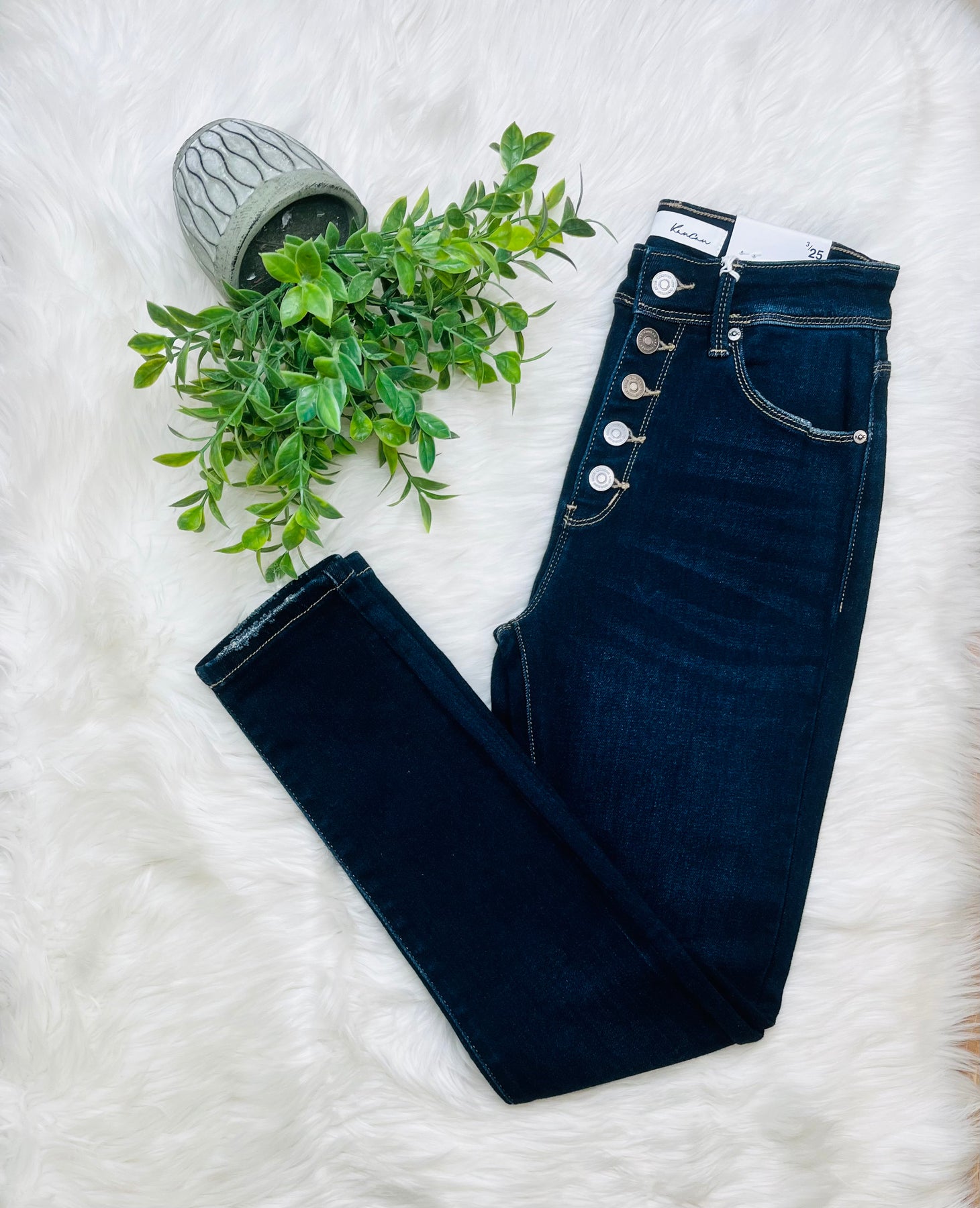 The Kancan Button Fly High Rise Skinny Jeans offer a stylish, streamlined silhouette without any distressed features, ensuring a polished look for various occasions. The high-rise design provides added support and comfort, while the button fly enhances durability and ease of wear. Ideal for those seeking a classic denim option.