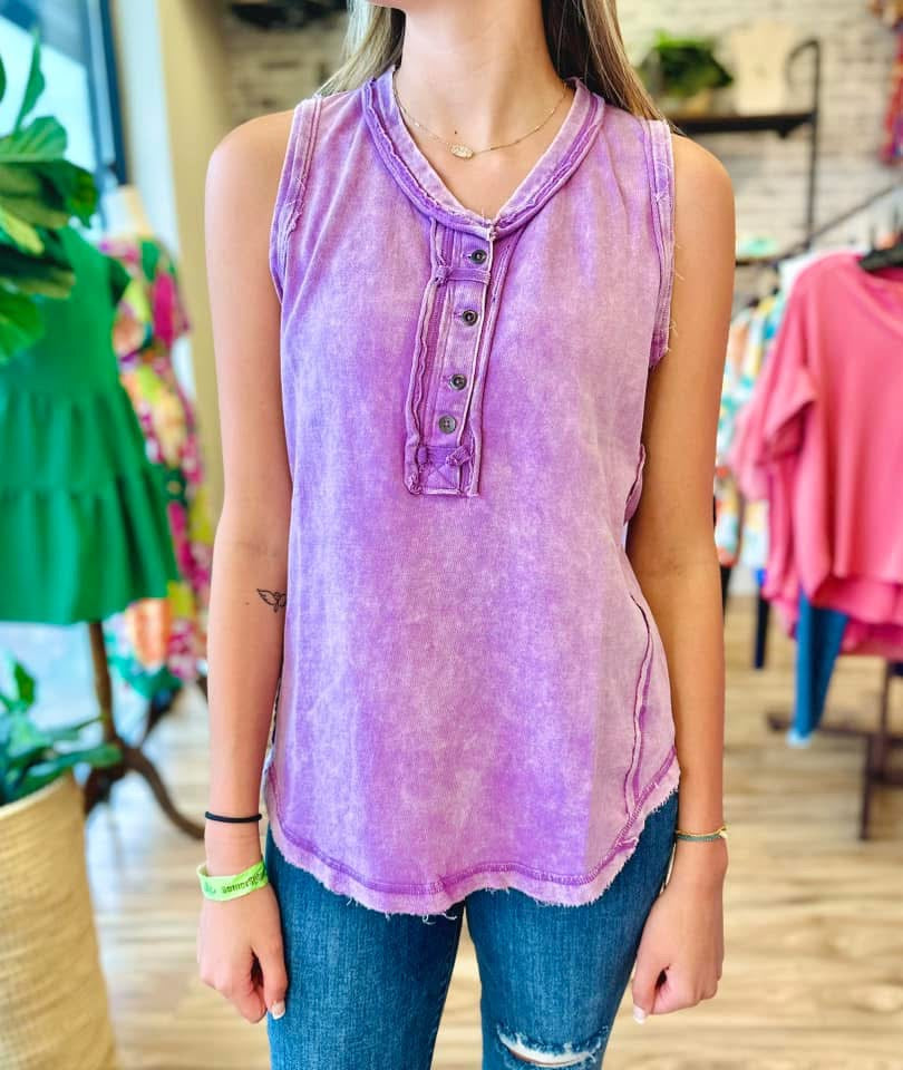 Effortlessly stylish and versatile, Zenana's Lavender Acid Wash Sleeveless Top is a must-have for any wardrobe. Made with high-quality fabric, this top features a unique acid wash design in a beautiful lavender color. Perfect for any occasion, this top is the perfect blend of comfort and fashion.