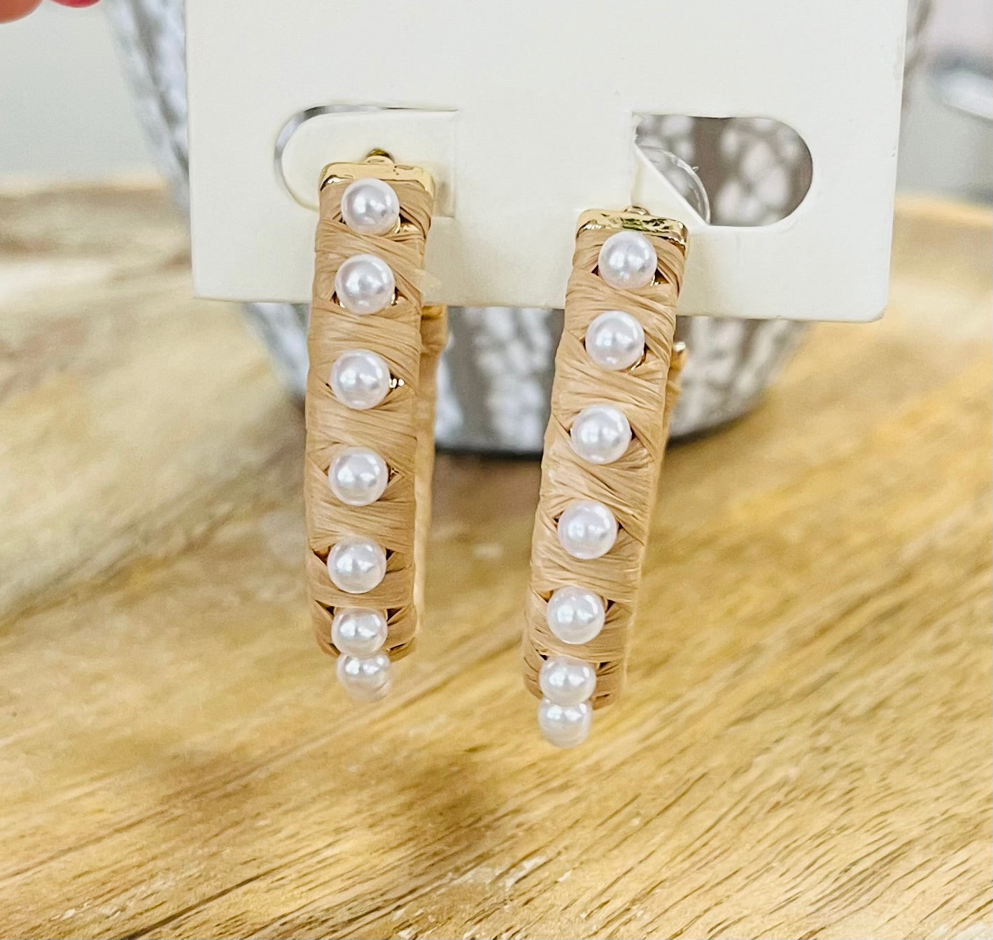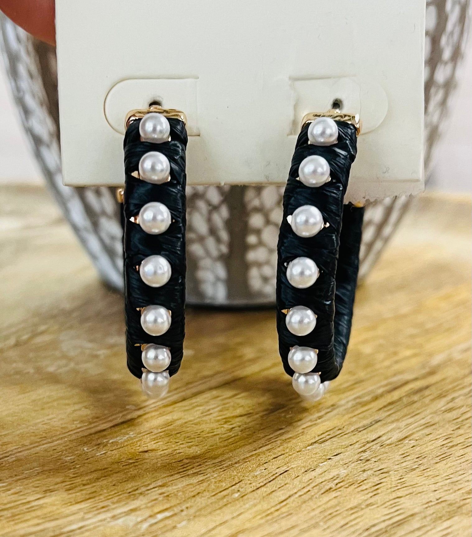 These elegant Fabric Pearl Hoops feature a unique fabric design embellished with pearls. The lightweight hoops are perfect for adding a touch of sophistication to any outfit. With their versatile style and comfortable fit, you can effortlessly elevate your look for any occasion. AW