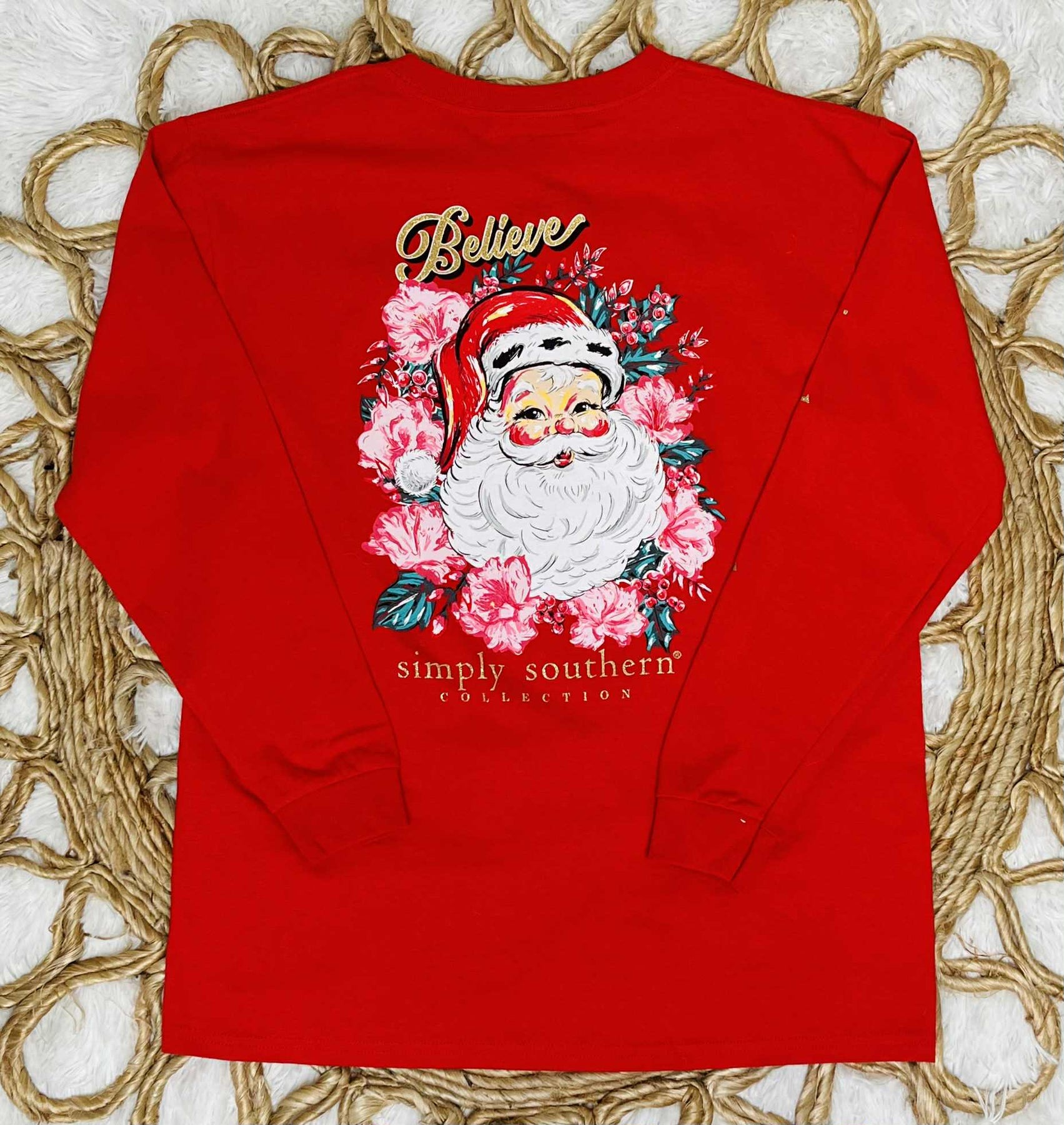 Spread Christmas cheer with the Simply Southern Youth Merry and Bright Long Sleeve shirt. Featuring a jolly Santa design, this shirt is perfect for the holiday season. Made with high-quality materials, your child will stay comfortable while looking festive. Get yours today and make spirits bright!
