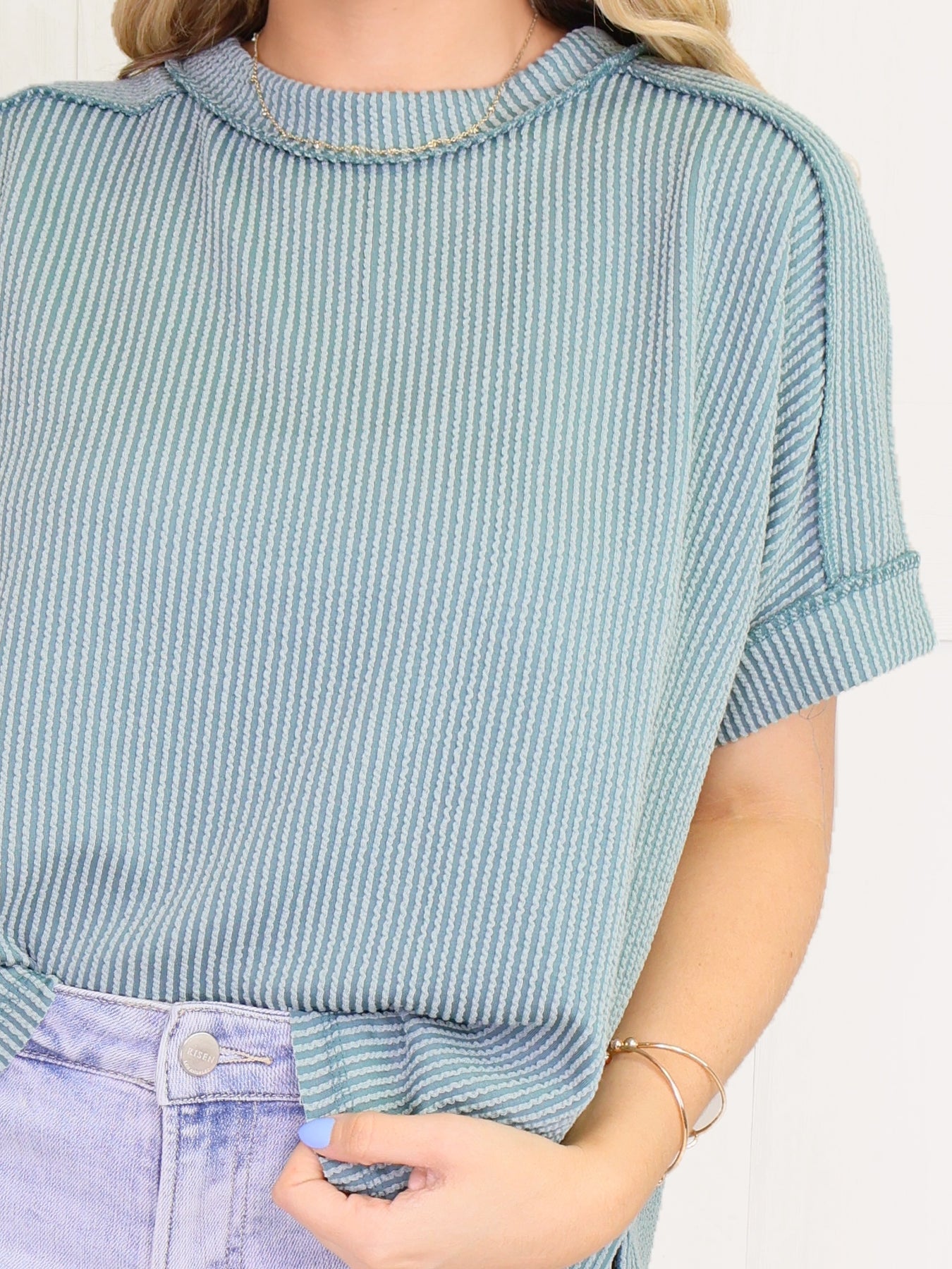 Introducing our Cuff Sleeve Ribbed Top - Jade the perfect addition to your wardrobe! This beautiful top features a ribbed texture and stylish cuff sleeves, adding a touch of elegance to any outfit. The soft jade color is both feminine and versatile, making it easy to dress up or down for any occasion. Upgrade your style and comfort with our Cuff Sleeve Ribbed Top - Jade