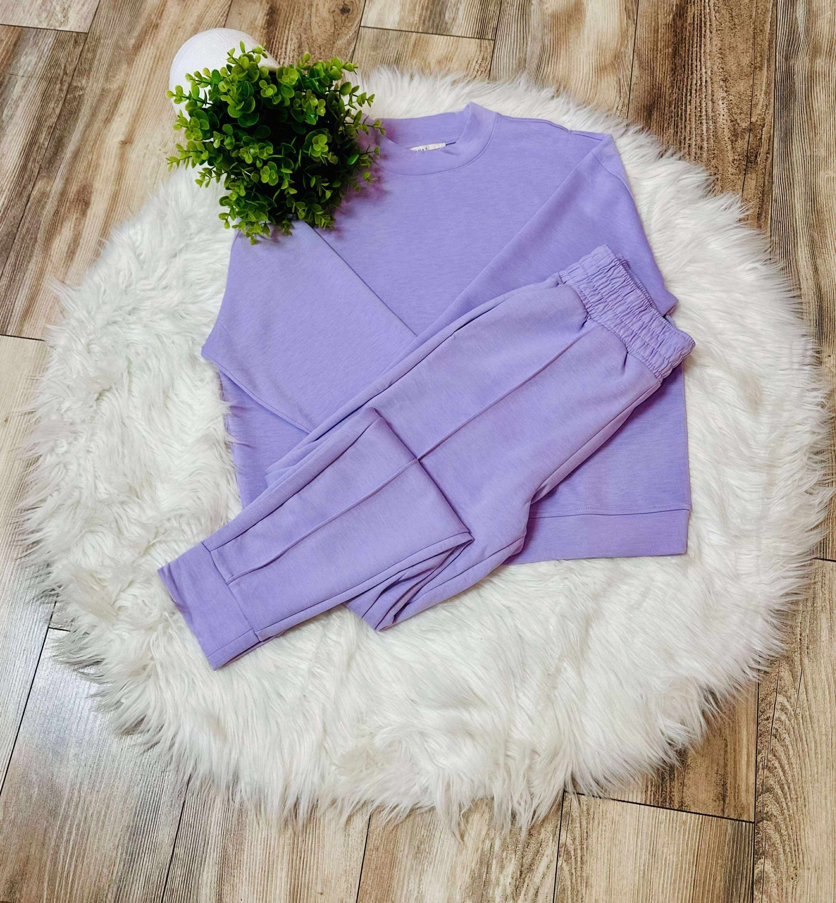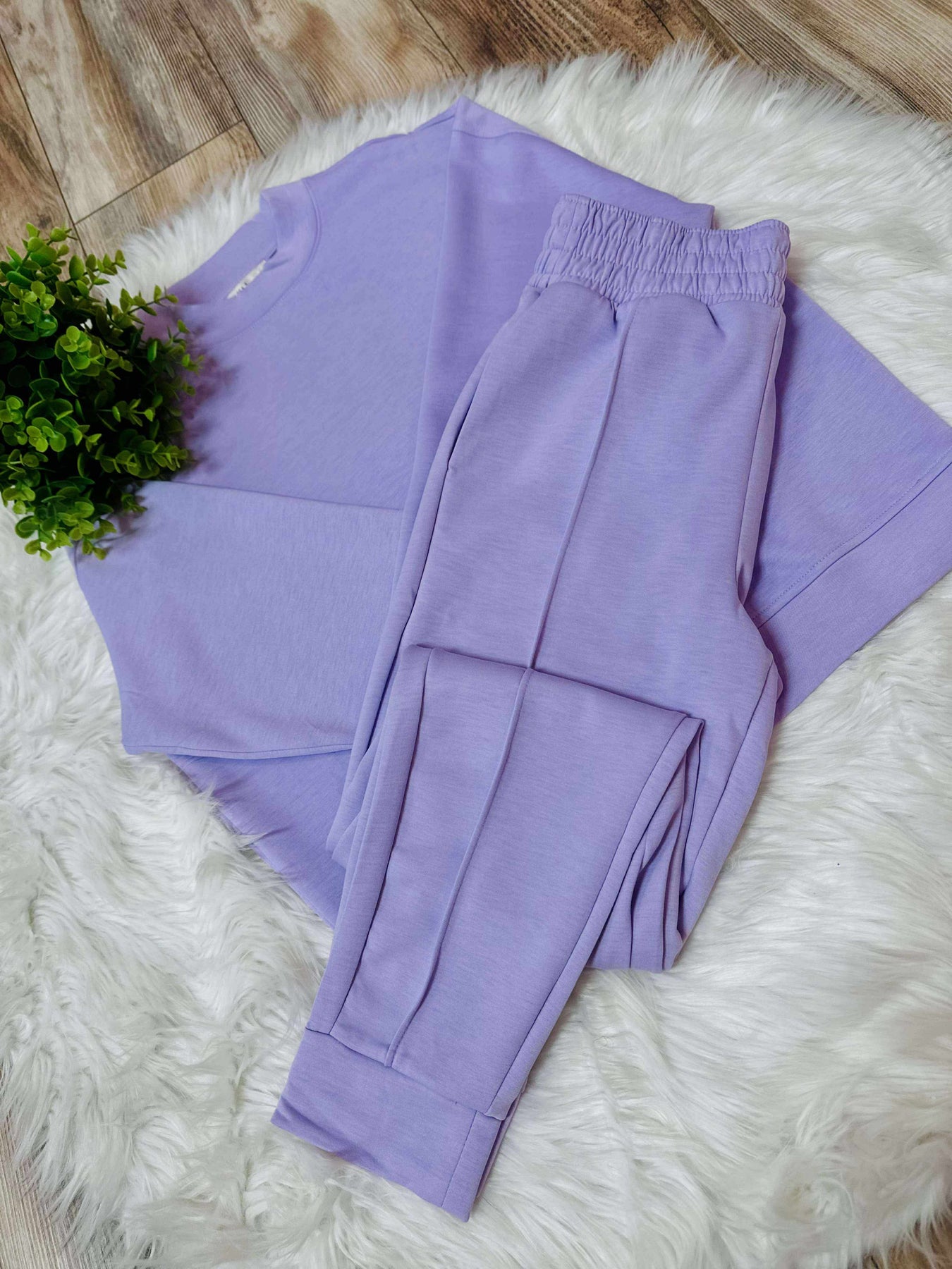 Women’s Scuba Mock Neck Top and Jogger Set Lavender