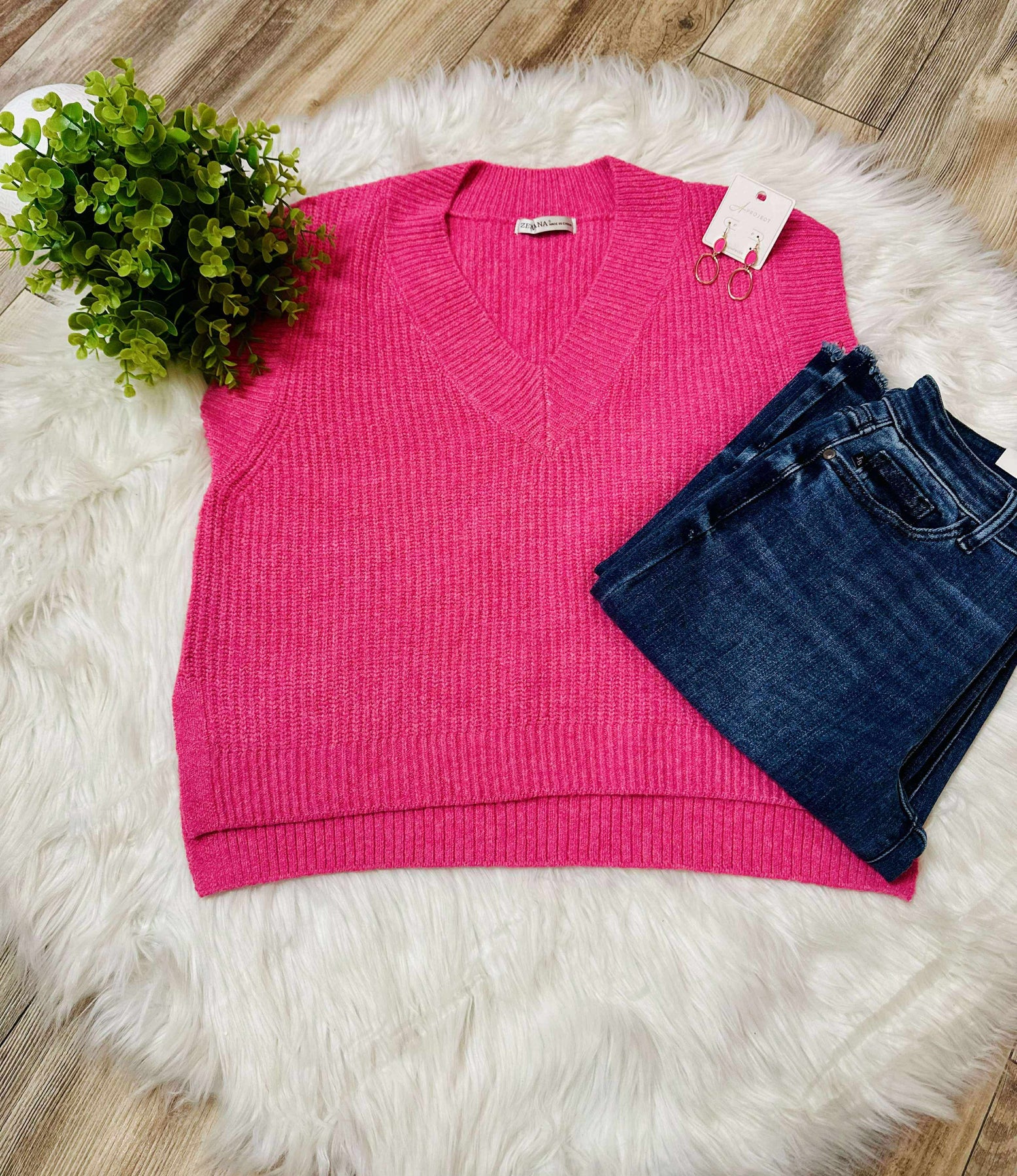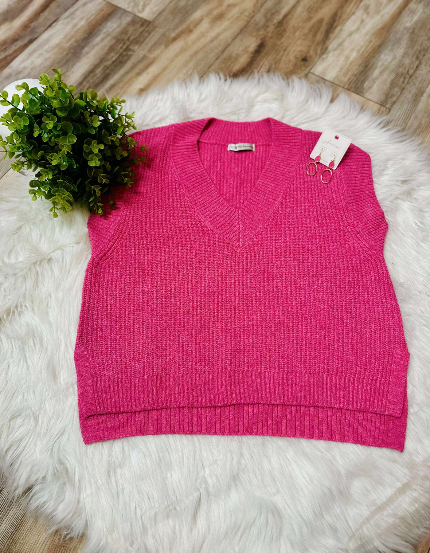 Women’s Zenana Hot Pink V-Neck Sweater Vest with Side Slit