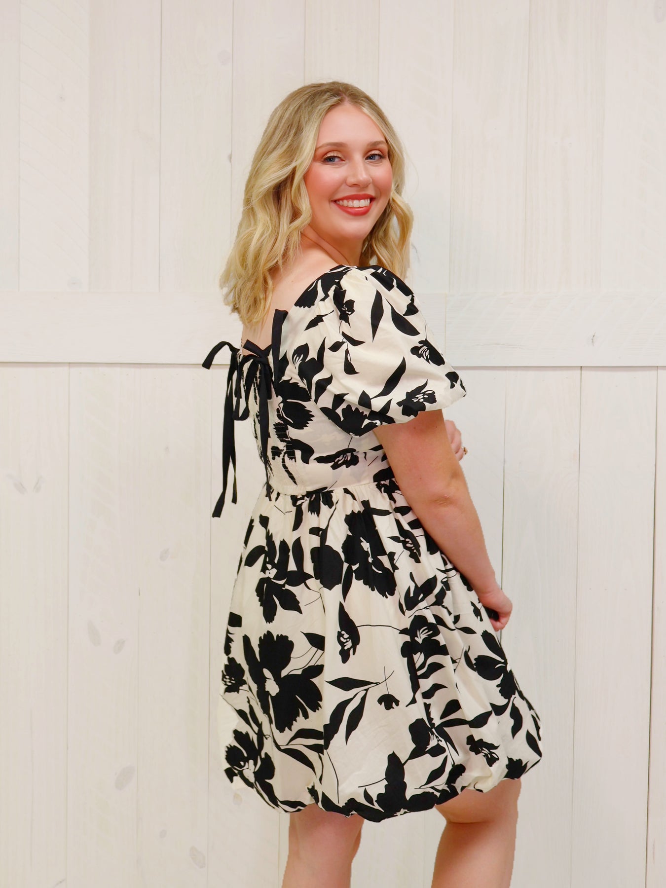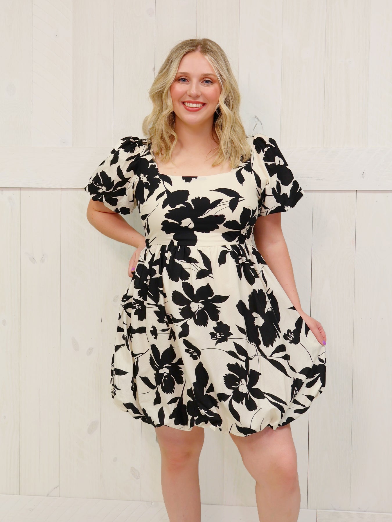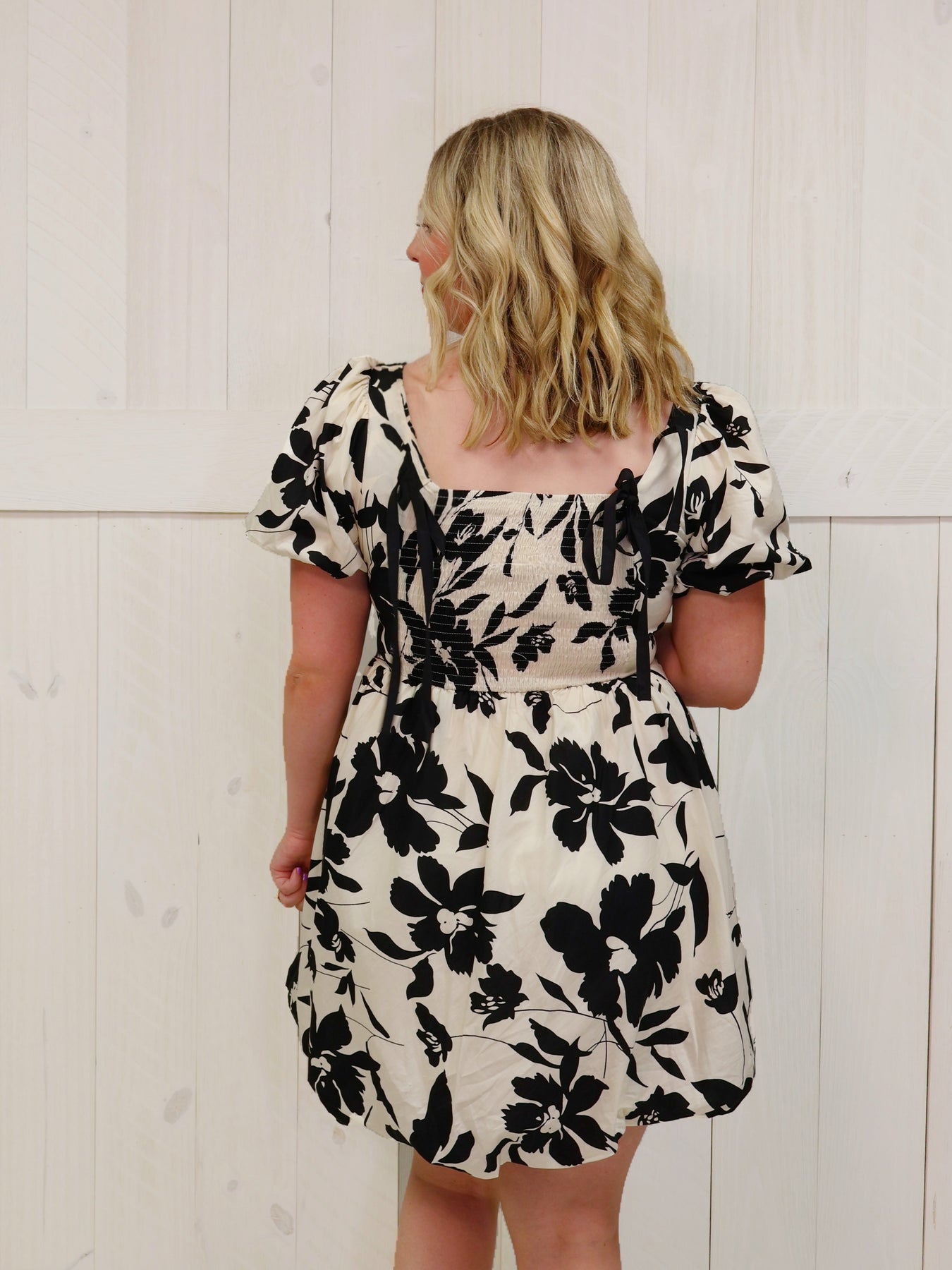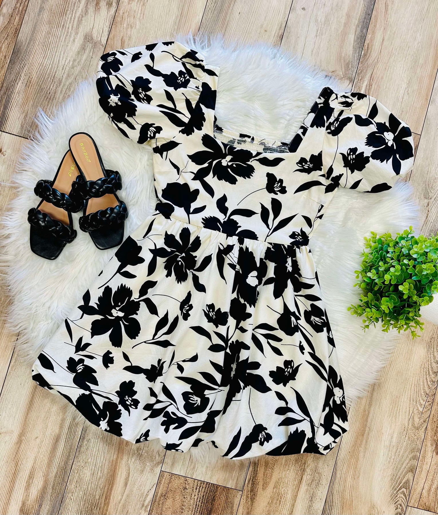 This elegant black and cream floral dress features a classic and timeless design that is perfect for any occasion. With its delicate floral pattern, it exudes sophistication and style. Its flattering fit and comfortable fabric make it a must-have addition to any wardrobe. Elevate your look with this beautiful floral dress.