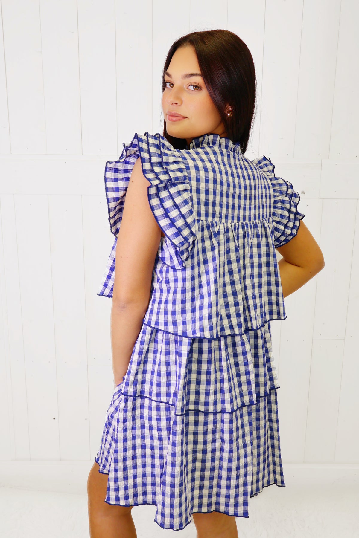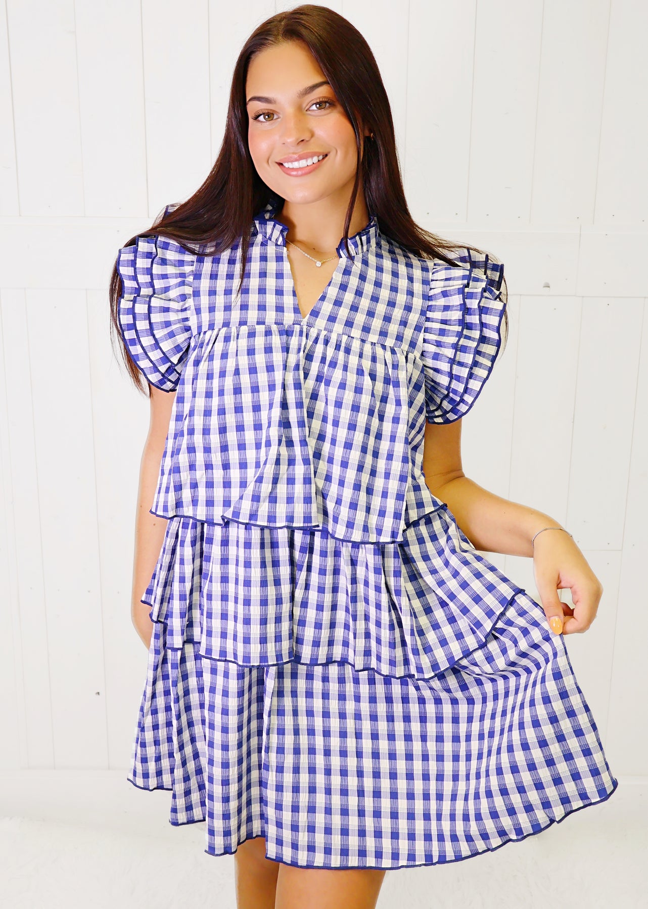 Get ready to turn heads with the Fantastic Fawn gingham tiered dress. The ruffle sleeves and tiered design add a touch of playfulness to this classic gingham print. Perfect for any occasion, you'll feel confident and stylish in this must-have dress.