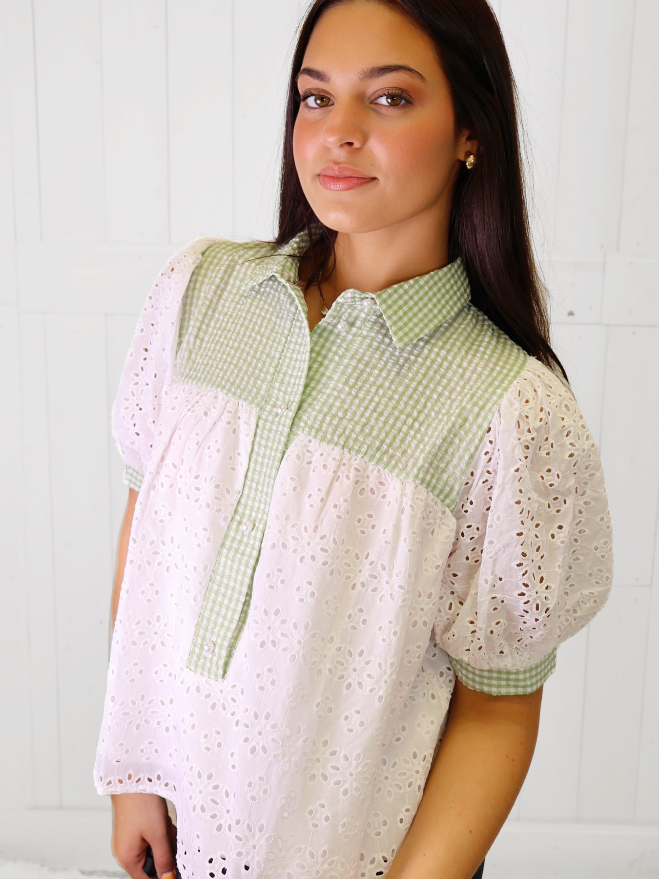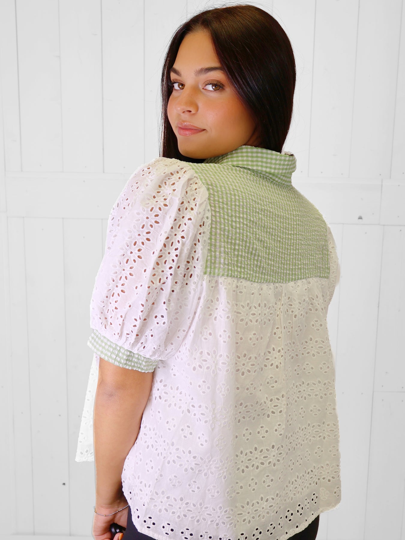This Fantastic Fawn white and sage top features a refreshing color combination that adds a touch of sophistication to any outfit. The white and sage hues complement each other perfectly, creating a versatile piece that can be dressed up or down. Experience the benefits of effortless style and versatility with this top.