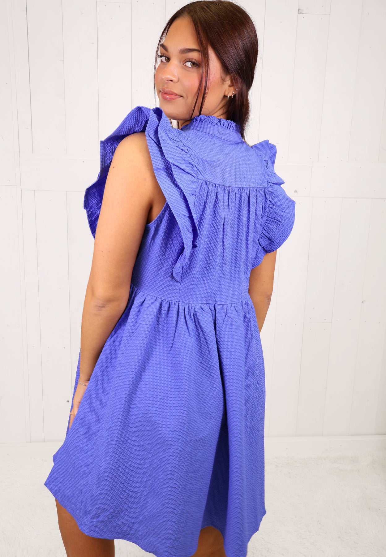 This Ocean Blue Flutter Sleeve Dress features airy, flared sleeves that add a touch of femininity to your look. The lightweight fabric is perfect for a breezy summer day, while the flattering A-line silhouette will ensure a comfortable yet stylish fit. Elevate your wardrobe with this versatile dress.