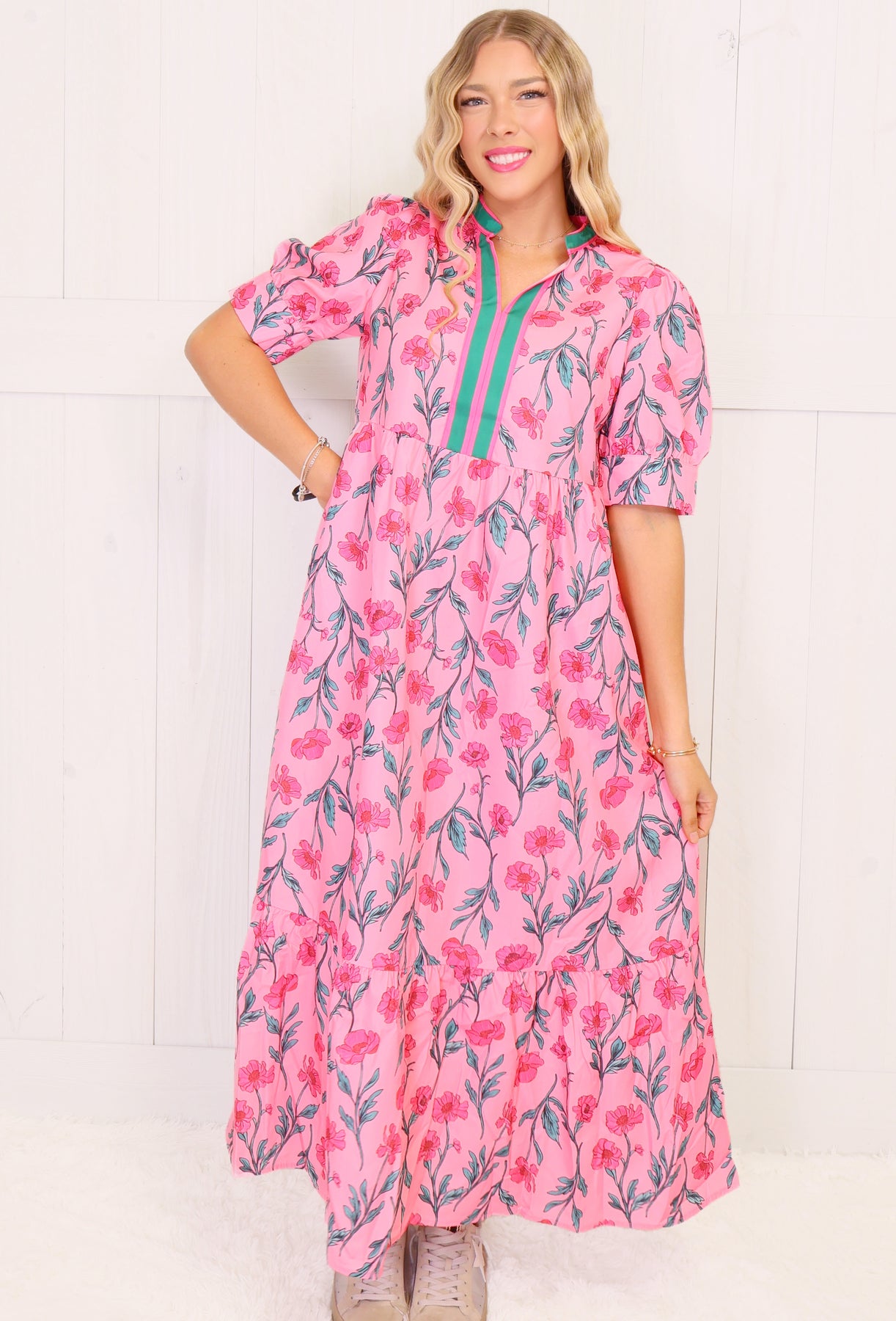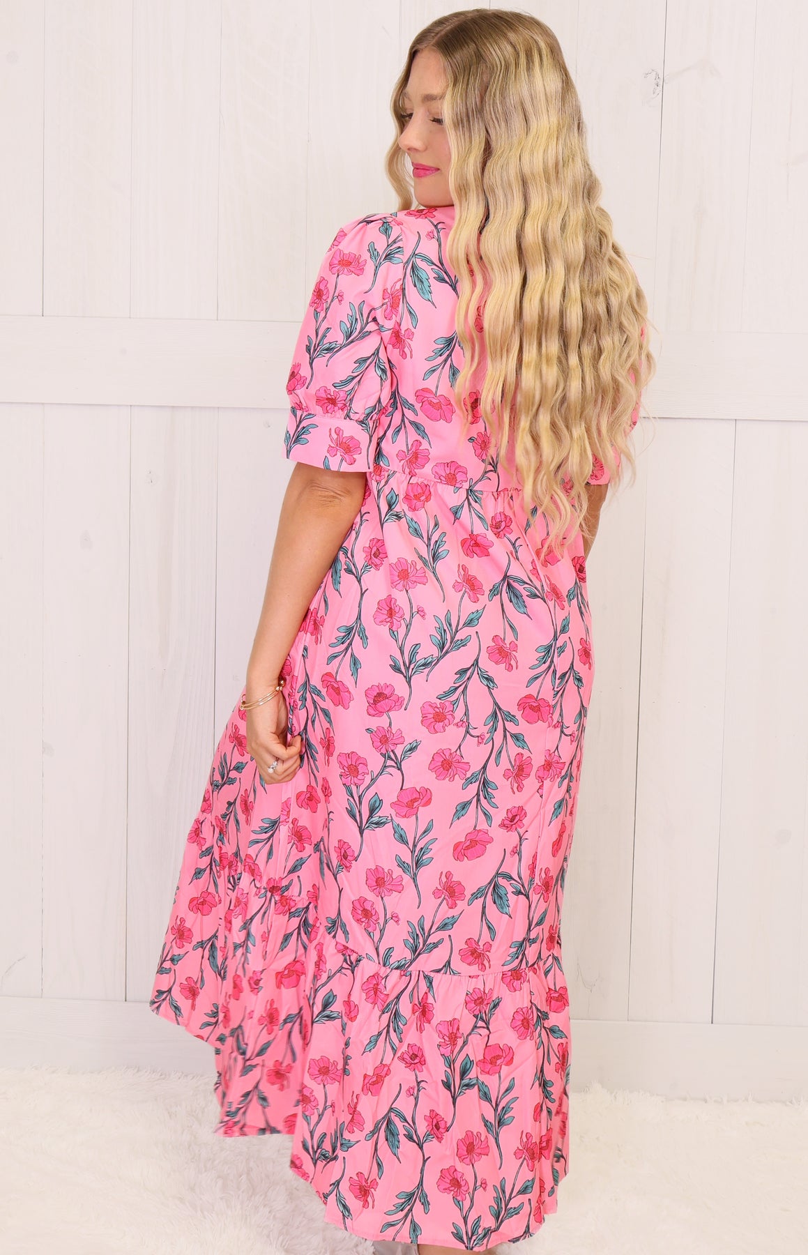 This Pink Floral Maxi Dress features a beautiful floral design that adds a touch of elegance and femininity to any wardrobe. Made with high-quality materials, this dress is perfect for any occasion, providing both comfort and style. Feel confident and chic in this timeless maxi dress.
