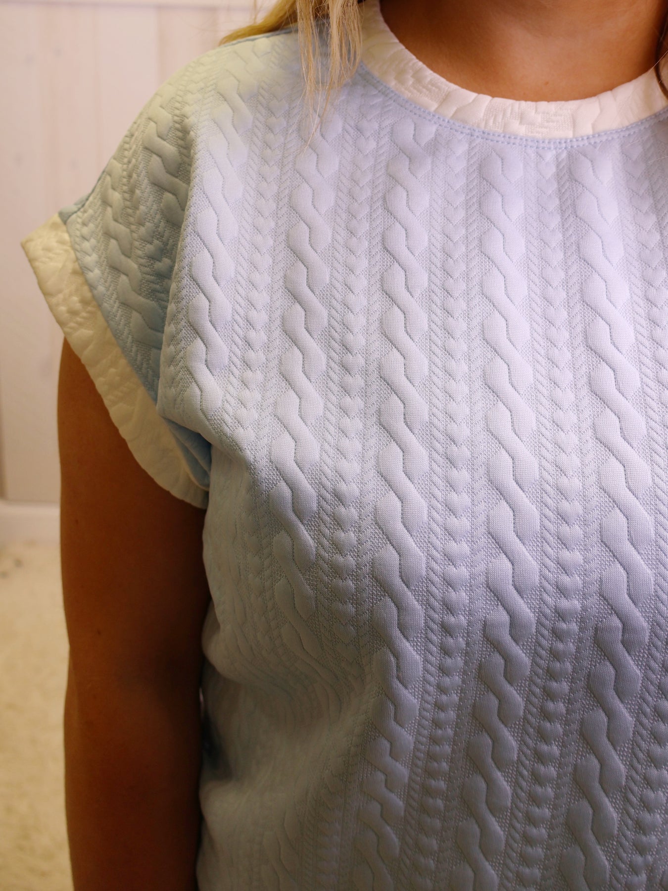 Expertly crafted for the modern woman, the Evermmee 2 Piece Set in sky blue with white trim is the perfect combination of style and comfort. Made with high-quality materials and a textured design, this set is versatile for any occasion. Elevate your wardrobe with this must-have set.