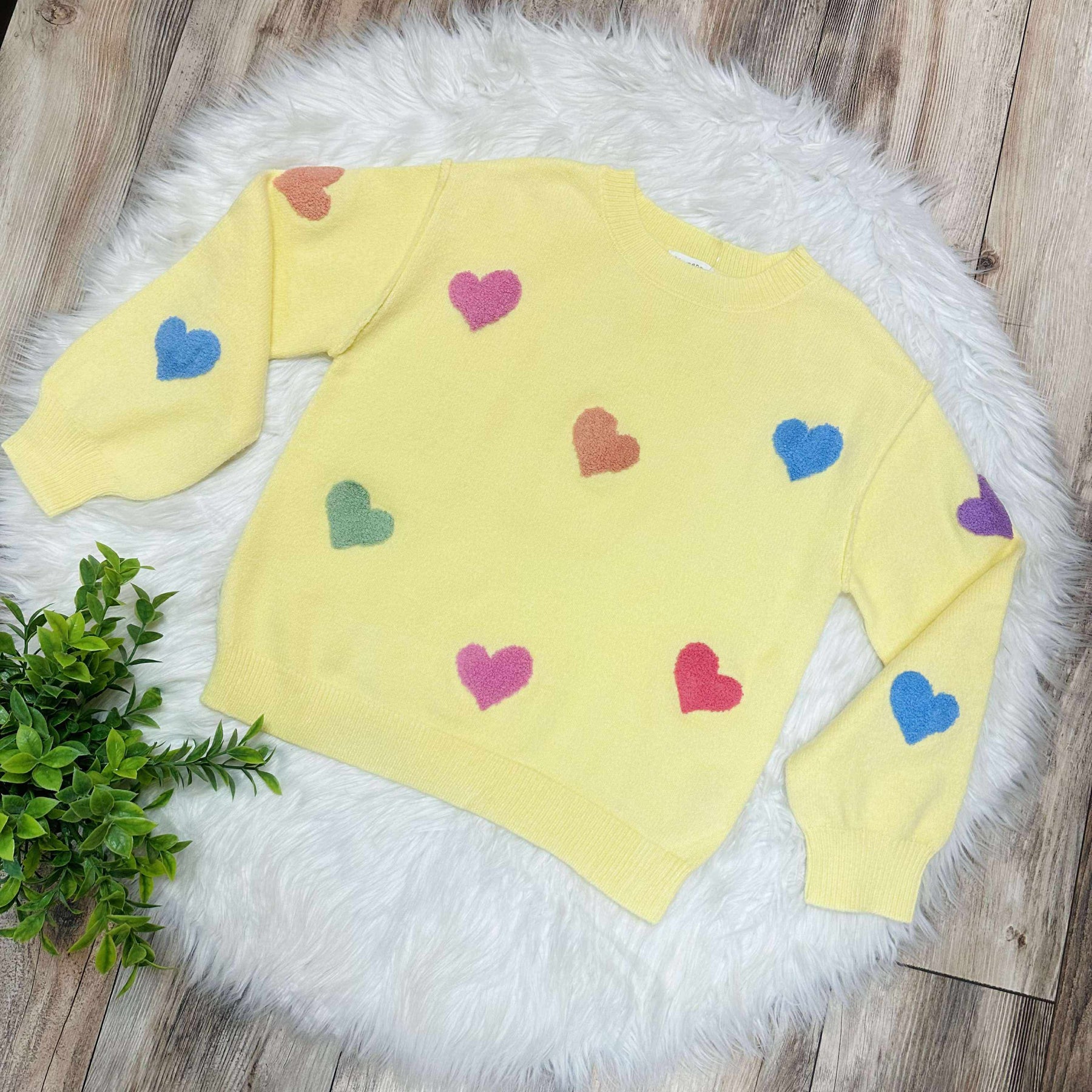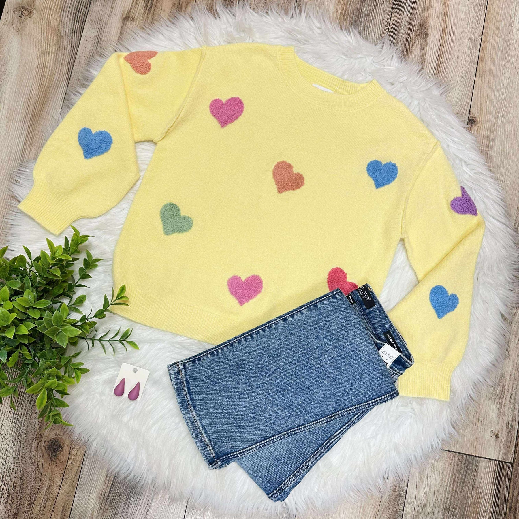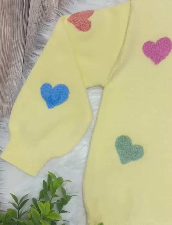 The Women’s Butter Yellow Multi Heart Knit Sweater combines a soft knit fabric with a playful heart pattern, enhancing warmth and comfort. Its lightweight design ensures breathability, making it suitable for various seasonal climates. Ideal for layering, this sweater offers versatility for both casual and semi-formal occasions.