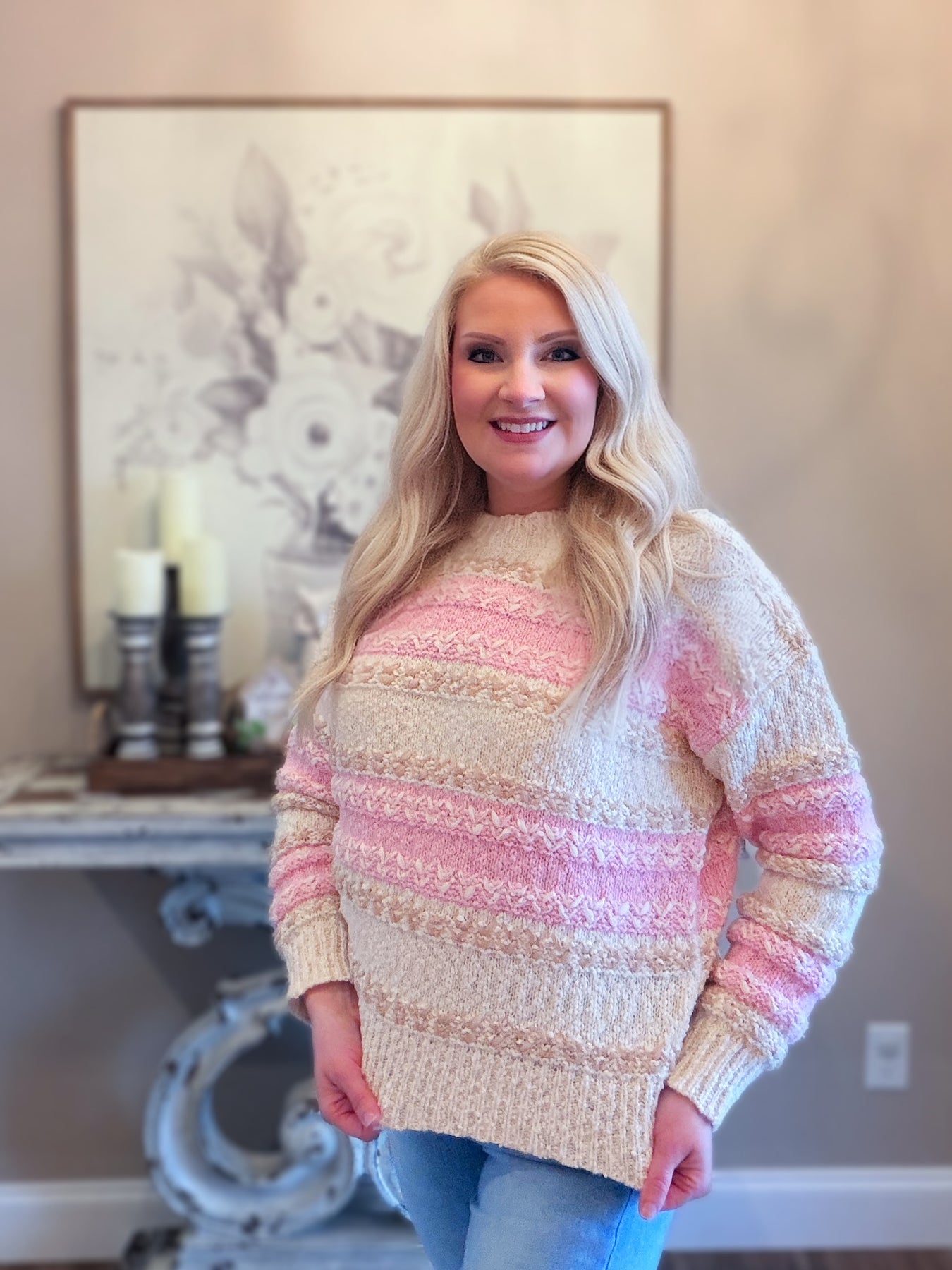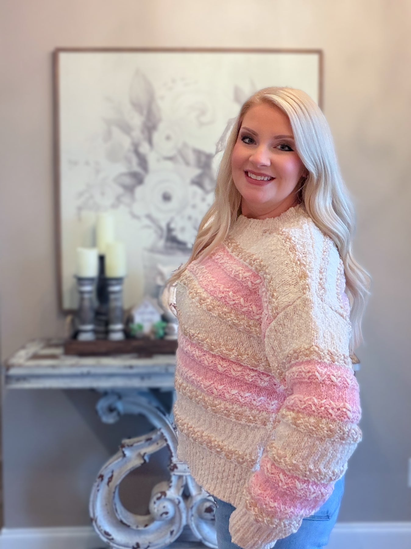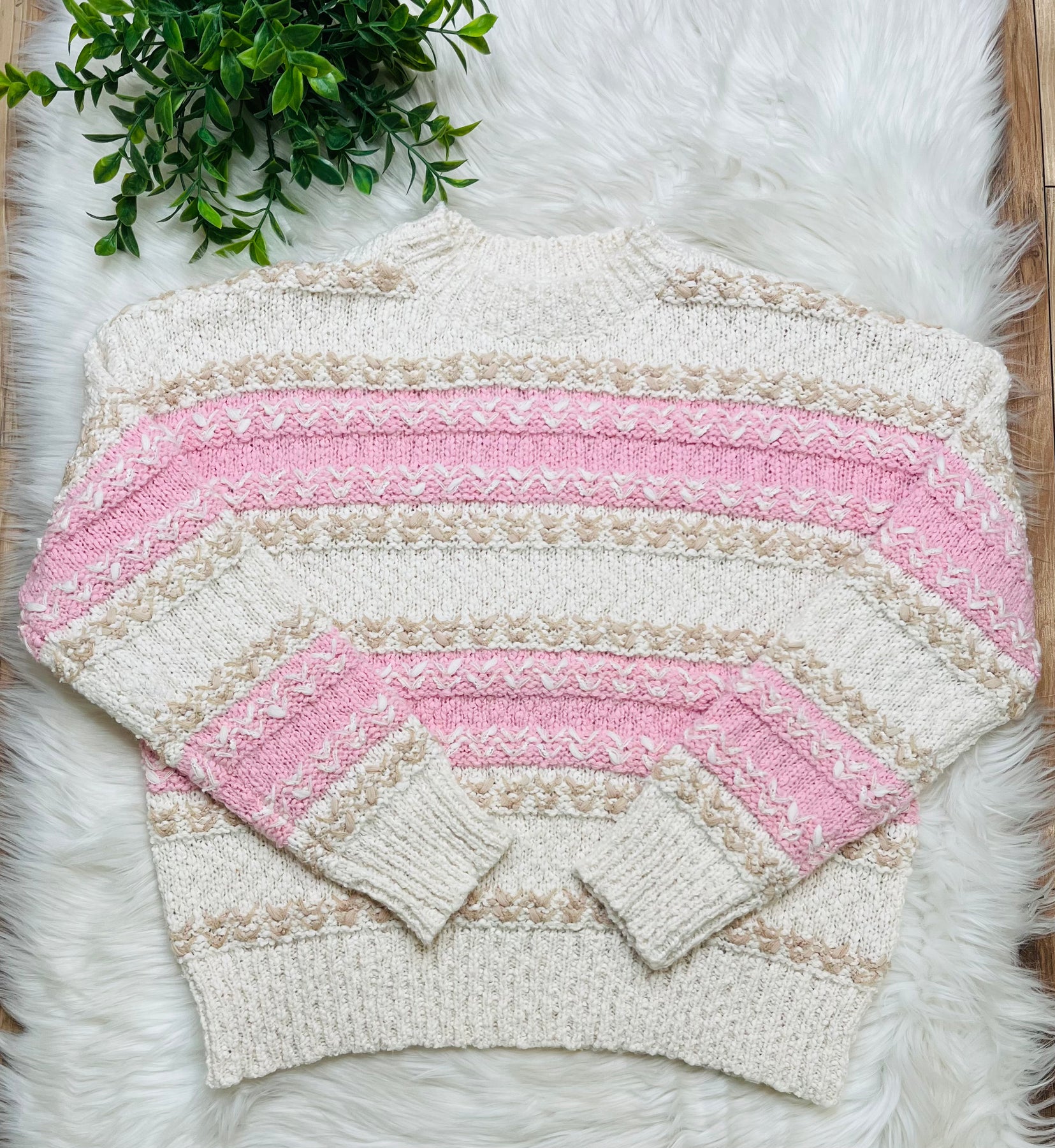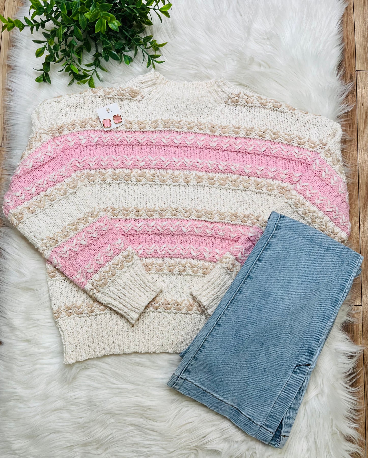 This Pink Color Block Knit Sweater will keep you warm and stylish with its comfortable fit, making it perfect for any occasion!