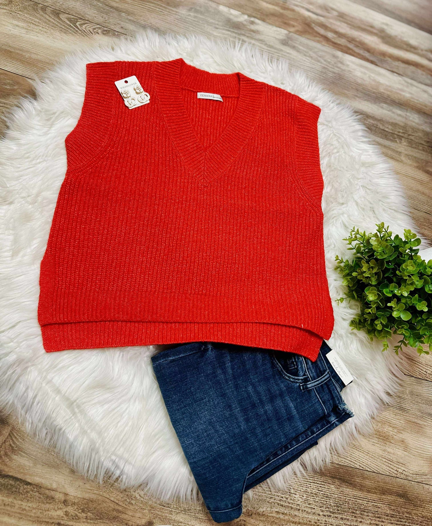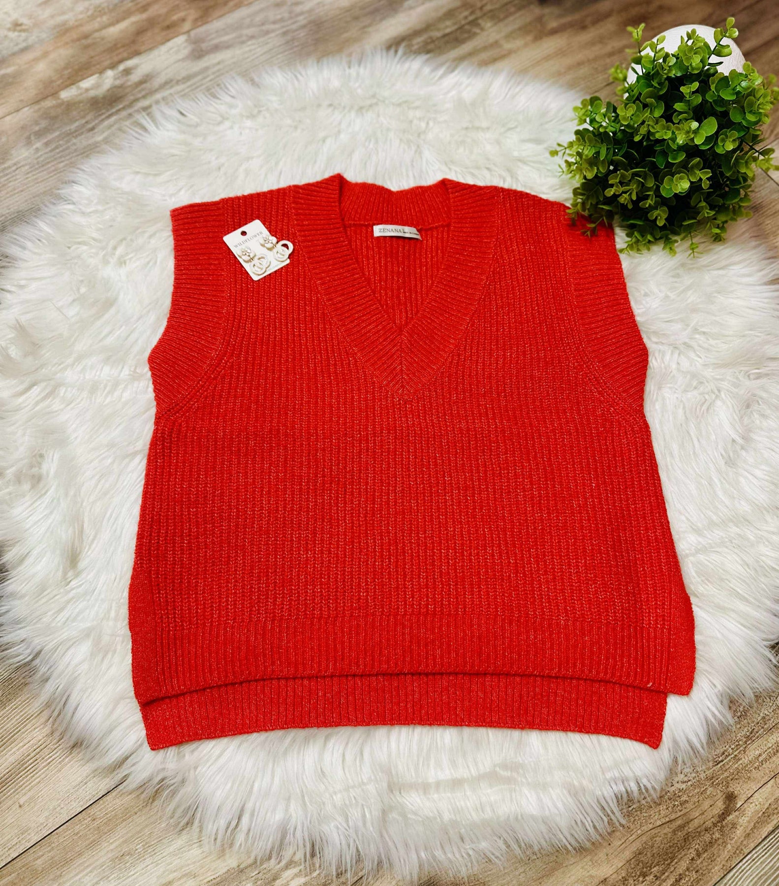 Women’s Zenana Red V-Neck Sweater Vest with Side Slit