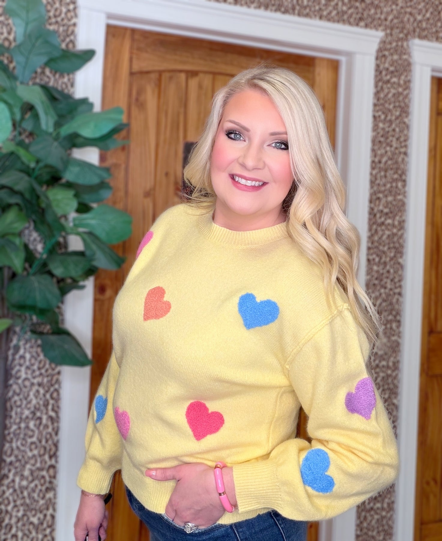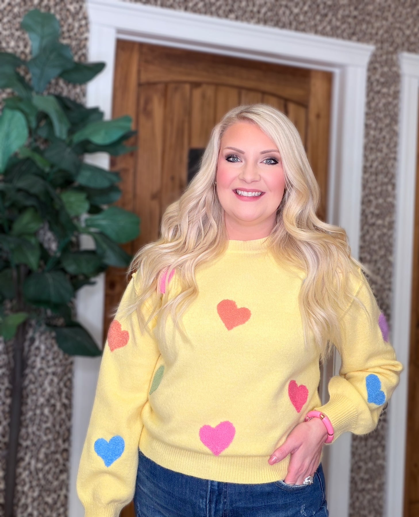 The Women’s Butter Yellow Multi Heart Knit Sweater combines a soft knit fabric with a playful heart pattern, enhancing warmth and comfort. Its lightweight design ensures breathability, making it suitable for various seasonal climates. Ideal for layering, this sweater offers versatility for both casual and semi-formal occasions.