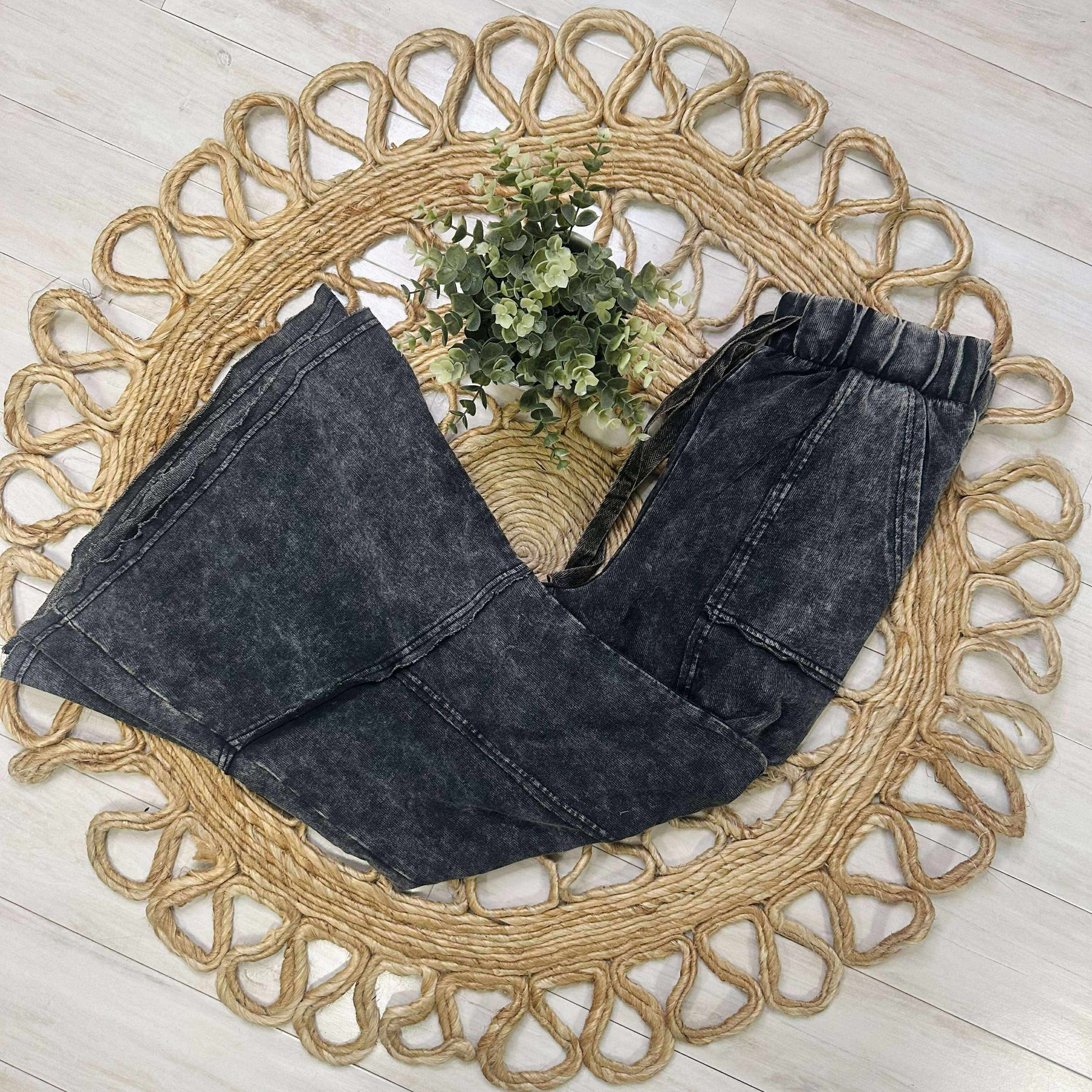 These Zenana pants feature exposed seams and a flare hem, creating a stylish and versatile look. The drawstring waist provides a comfortable and adjustable fit. Perfect for any occasion, these pants offer a trendy and functional addition to your wardrobe.