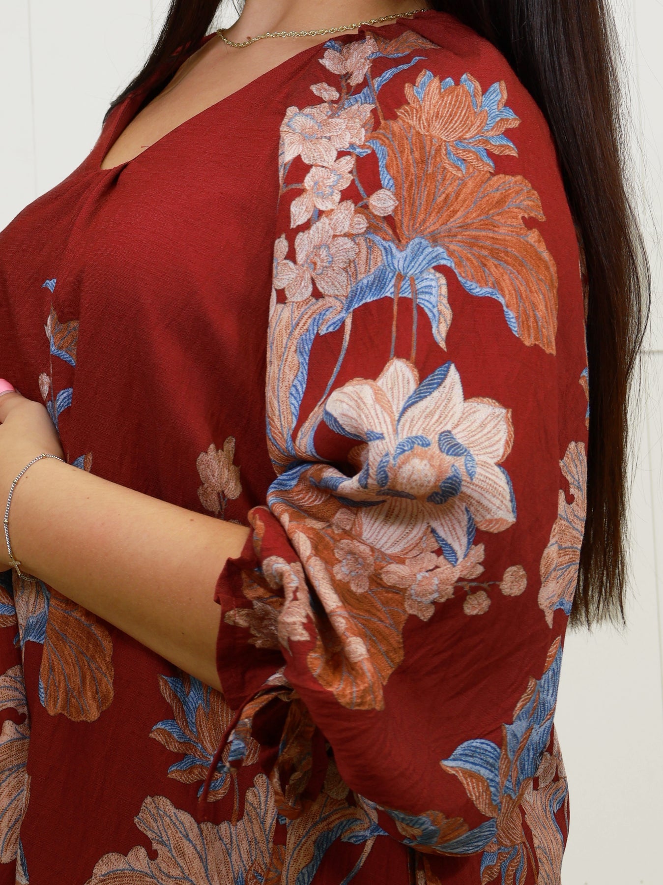 This elegant dress features intricate floral embroidery, making it a stylish statement piece. Crafted with high-quality materials, this dress is designed to provide you with both comfort and style. Perfect for any occasion or event, this dress is a must-have for any fashion-forward woman.