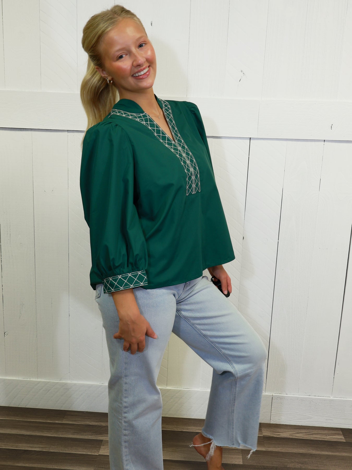 Crafted for elegance and style, our Women's Green Y Trimmed Embroidered Top is the perfect addition to any wardrobe. Made with high-quality fabrics, this top exudes sophistication and modern chic. Its unique Y-trim design and intricate embroidery add a touch of femininity, making it a versatile piece for both casual and formal occasions.