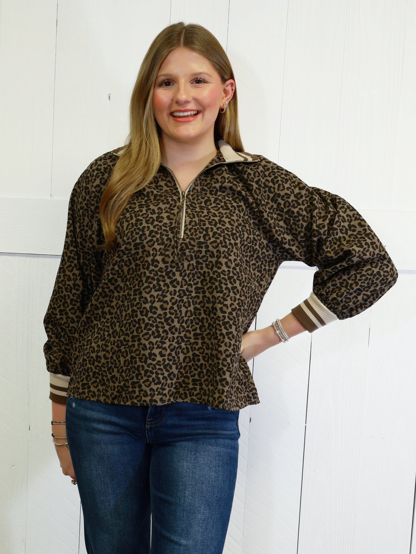 Expertly crafted with luxurious suede, this Women’s Mocha Suede Cheetah Pullover is the ultimate combination of comfort and style. The pullover design is perfect for easy layering, making it a versatile addition to any wardrobe. Stay warm and chic with this must-have piece.