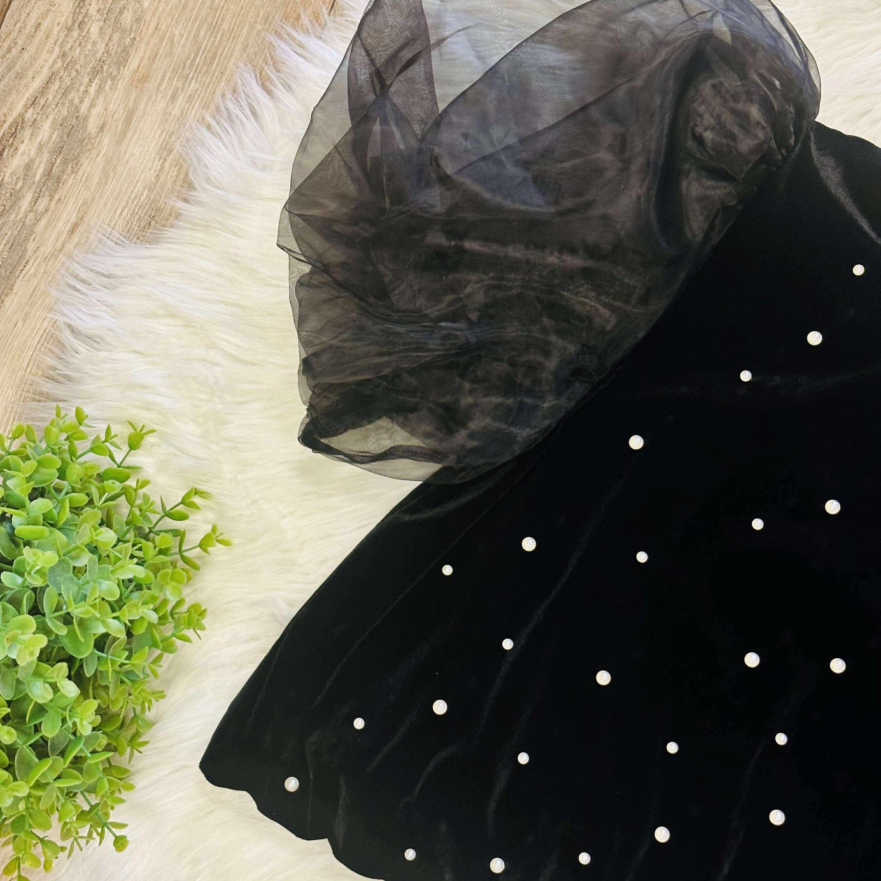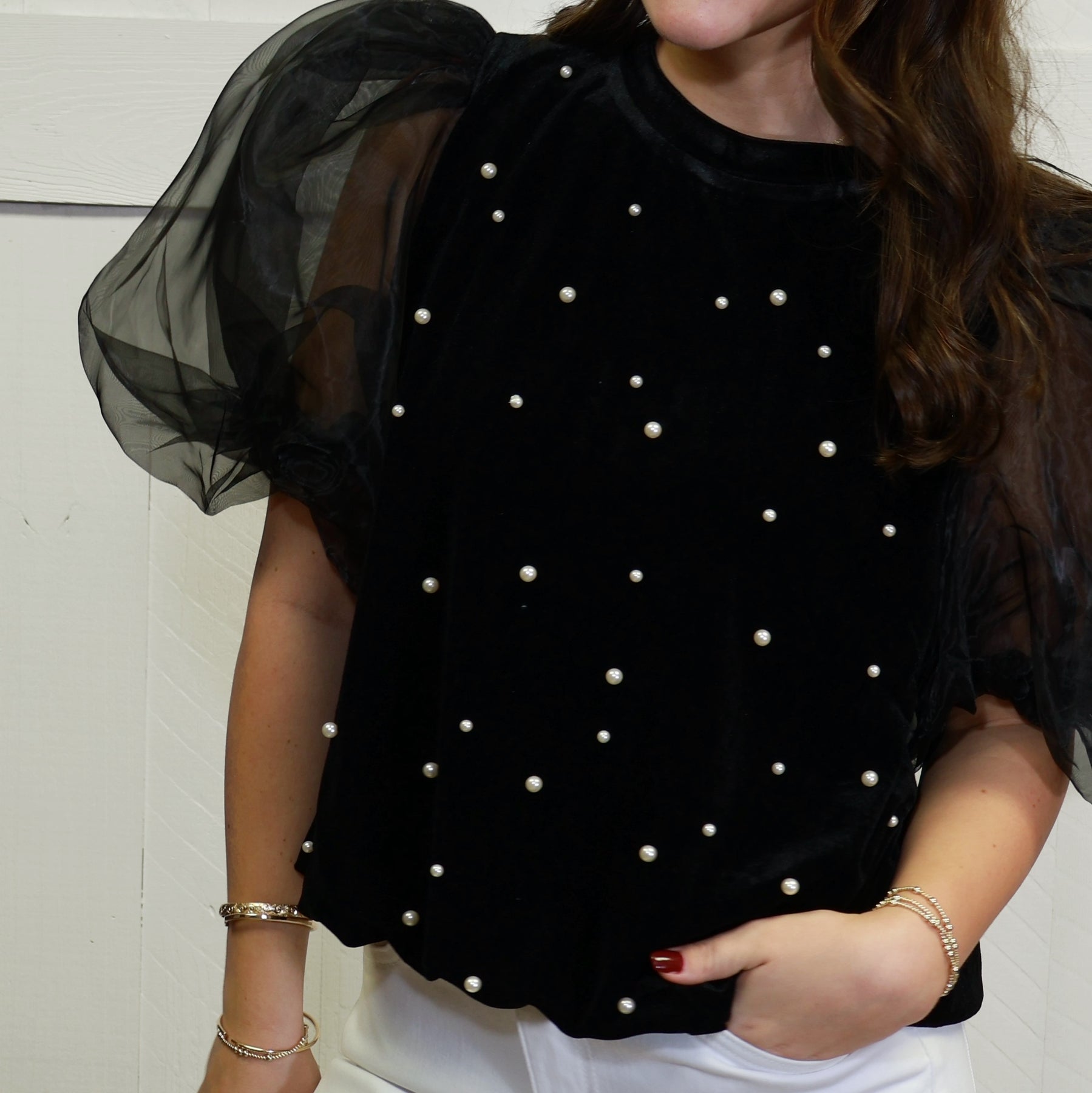Introducing our Women's Pearl Velvet Puff Sleeve Top. Made with a soft velvet fabric, this top is perfect for adding a touch of elegance to your wardrobe. The puff sleeves add a feminine touch, while the pearl embellishments make it a statement piece. Elevate your style with this versatile top.