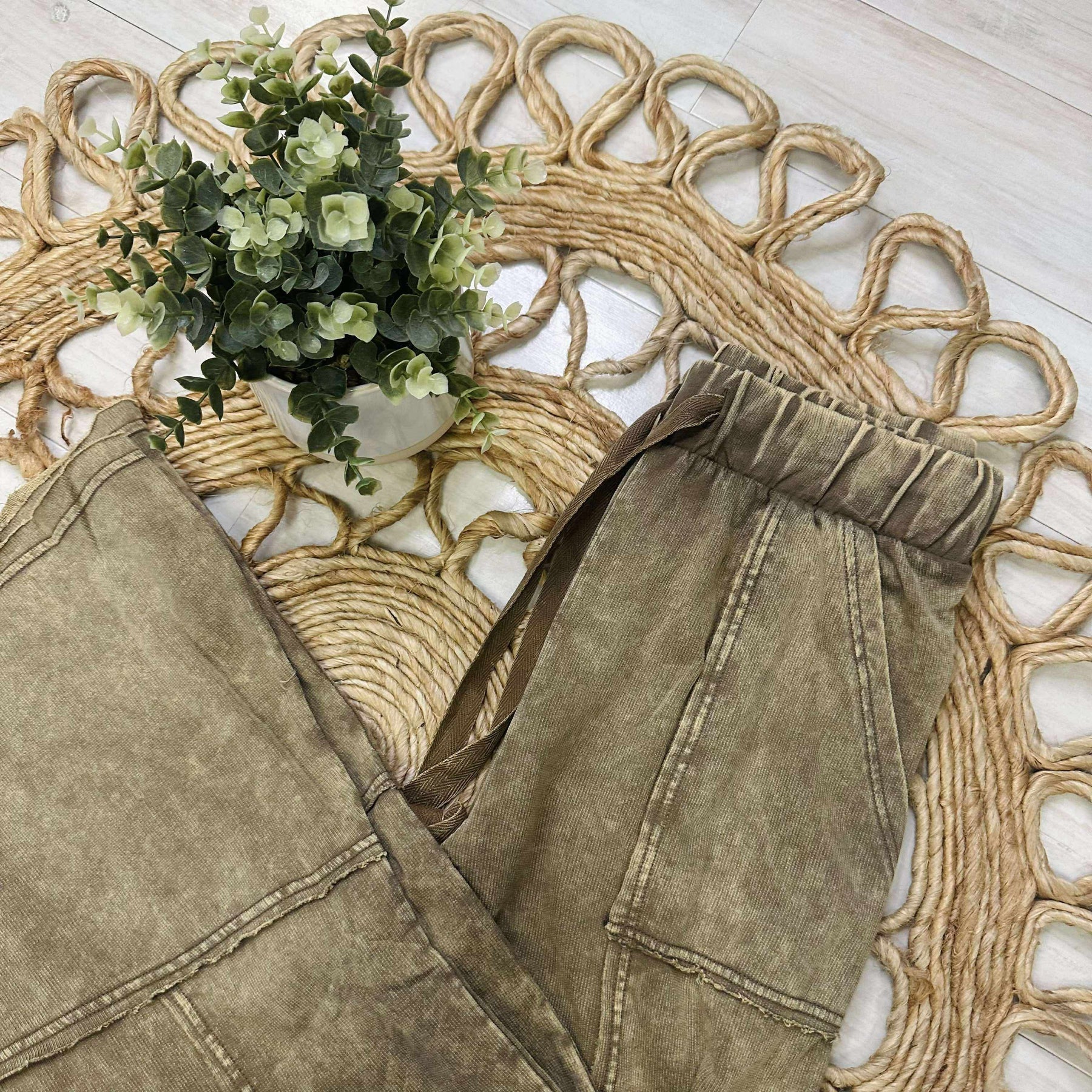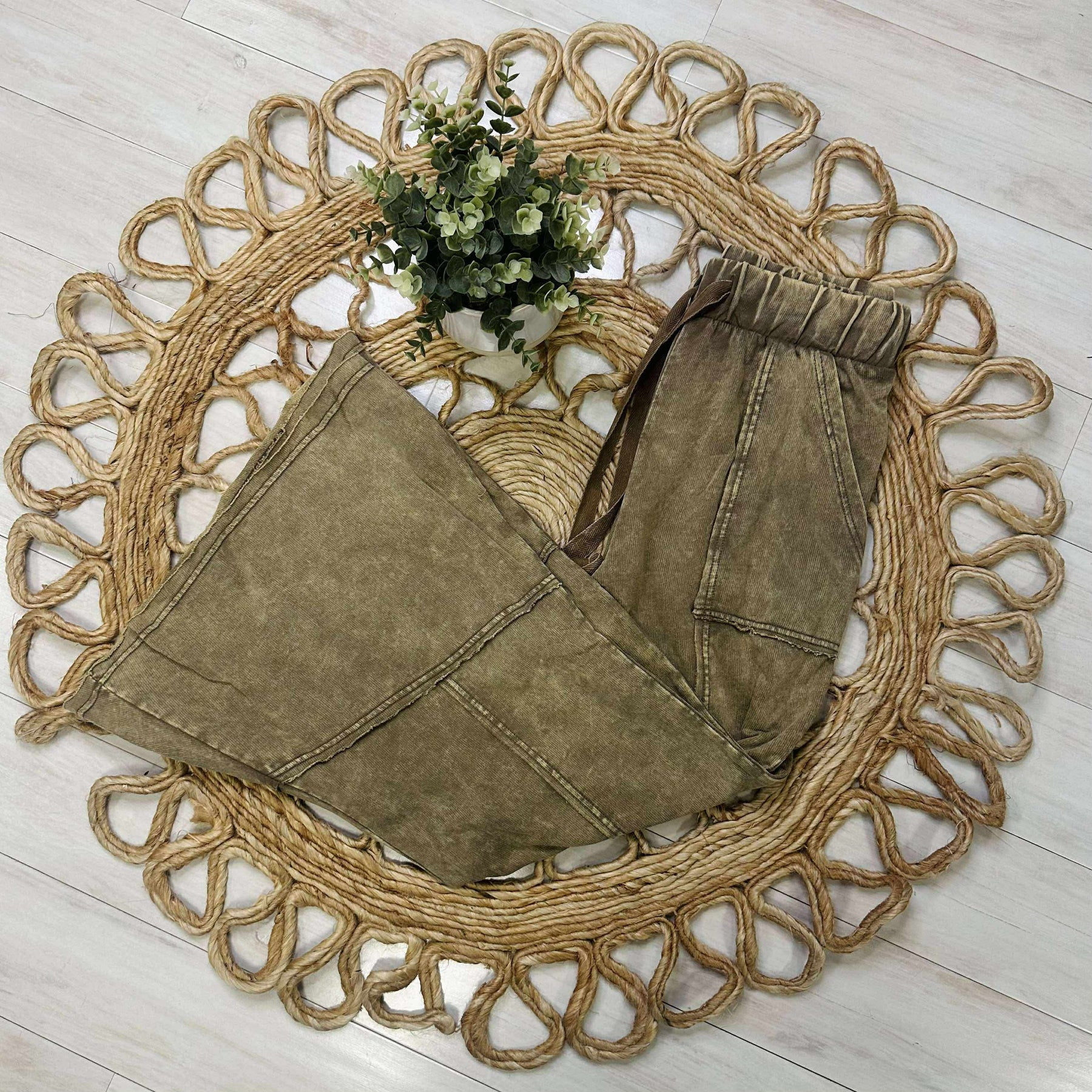 Zenana Exposed Seam Flare Hem Drawstring Pants Mocha Brown