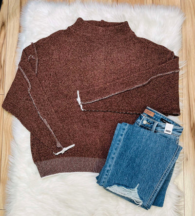 Women’s Mock Neck Raw Seam Chenille Sweater Brown