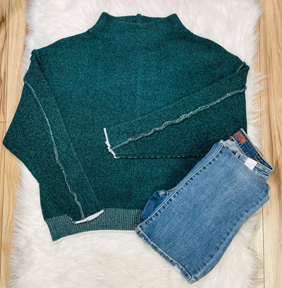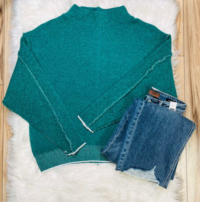 Women’s Mock Neck Raw Seam Chenille Sweater Hunter Green