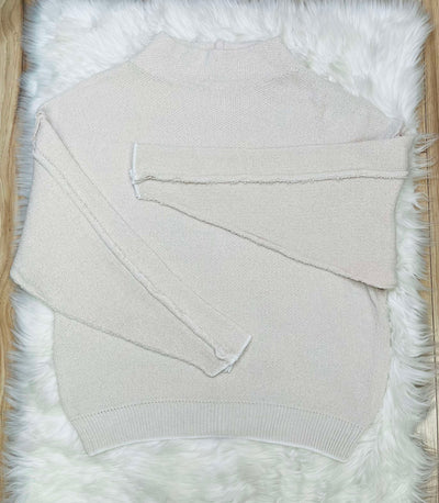 Women’s Mock Neck Raw Seam Chenille Sweater Sand Beige
