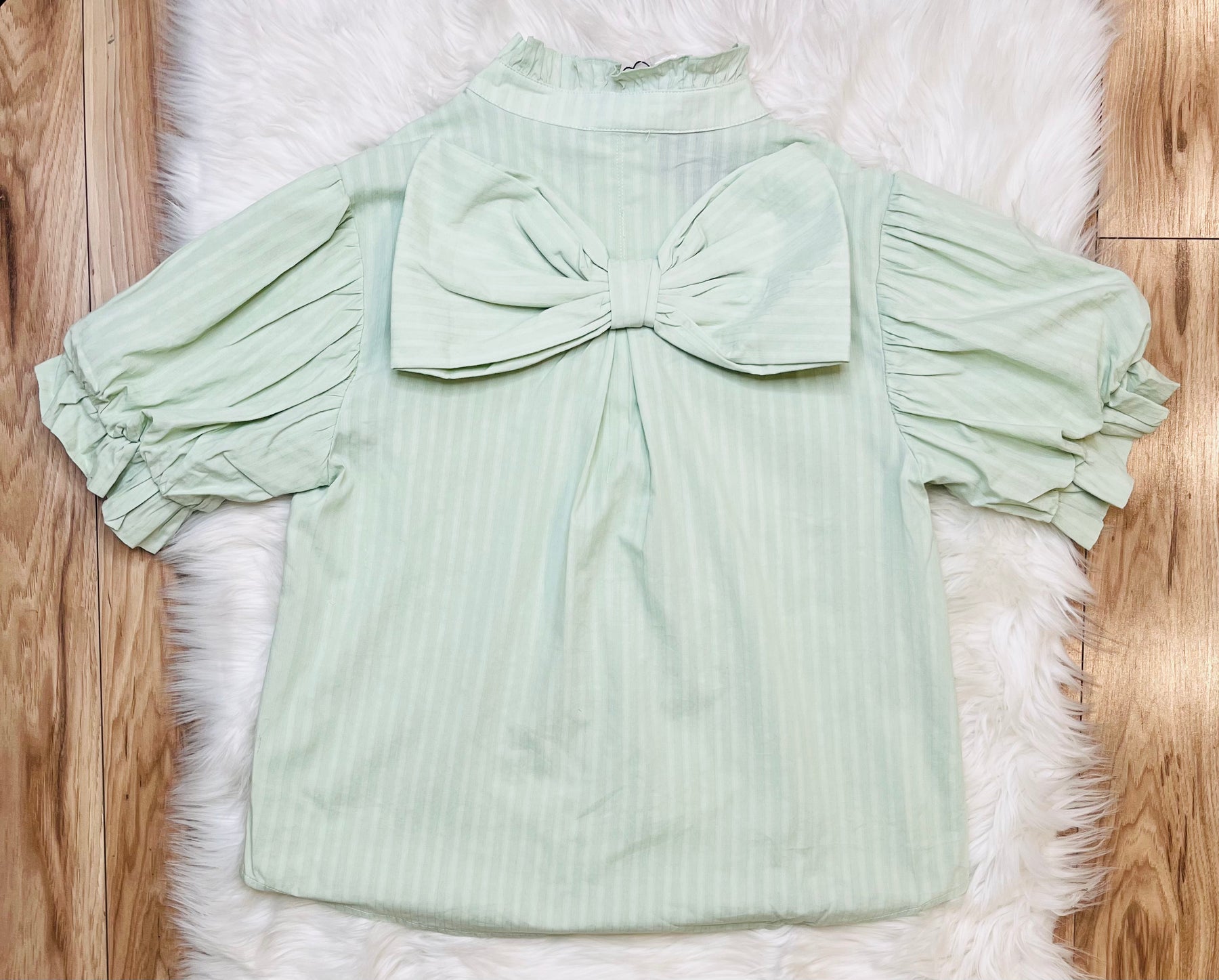 The Women’s GiGiO Light Green Striped Back Bow Top combines a classic striped design with a refined bow detail at the back. This top offers versatility for various occasions, allowing for effortless styling. The lightweight fabric enhances comfort, making it suitable for warm weather.