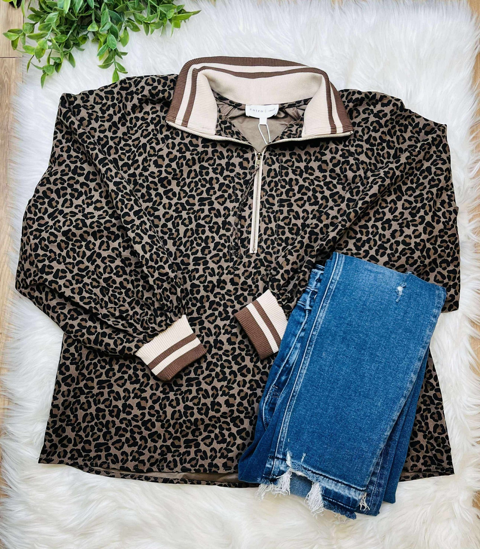 Expertly crafted with luxurious suede, this Women’s Mocha Suede Cheetah Pullover is the ultimate combination of comfort and style. The pullover design is perfect for easy layering, making it a versatile addition to any wardrobe. Stay warm and chic with this must-have piece.