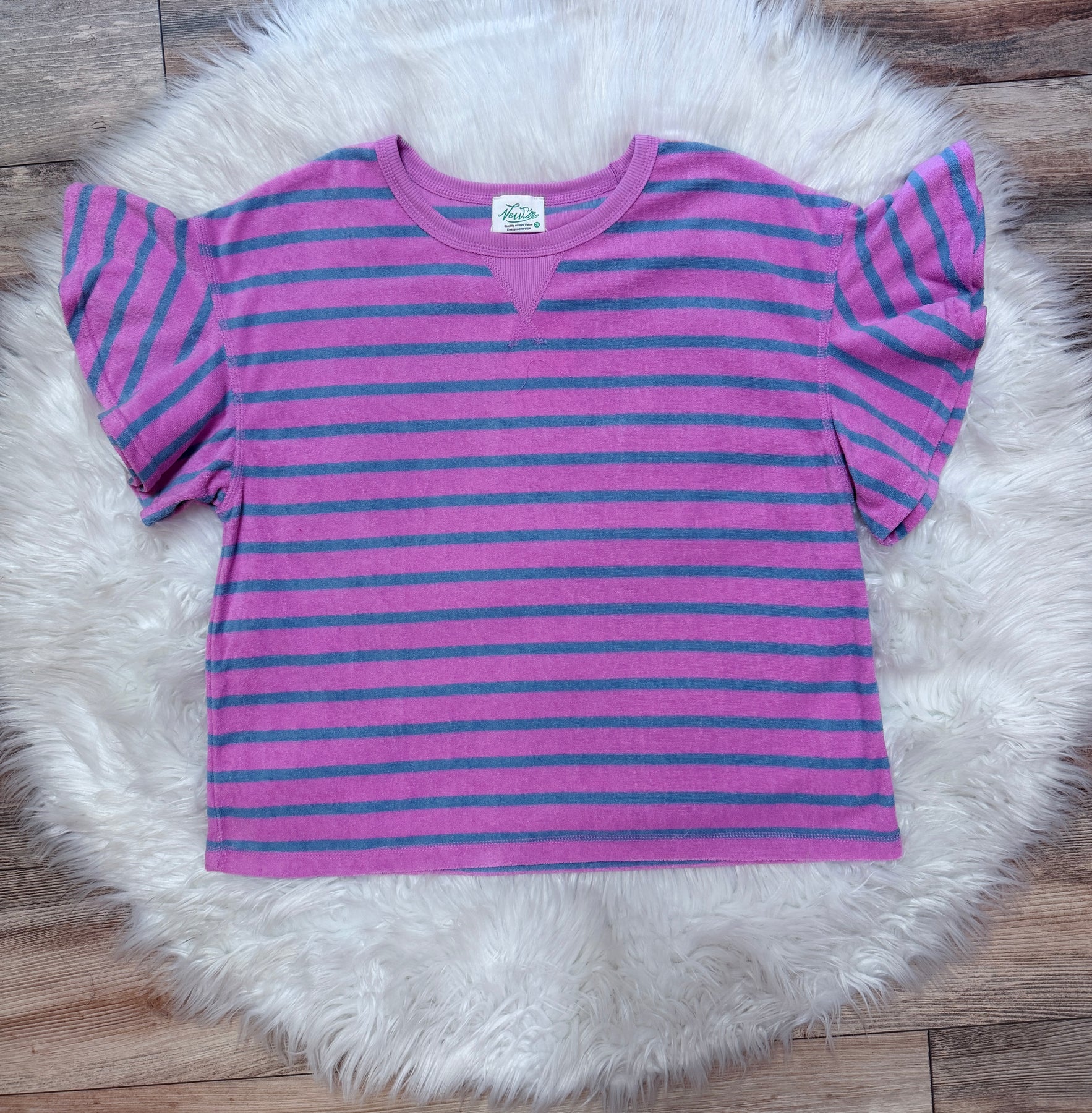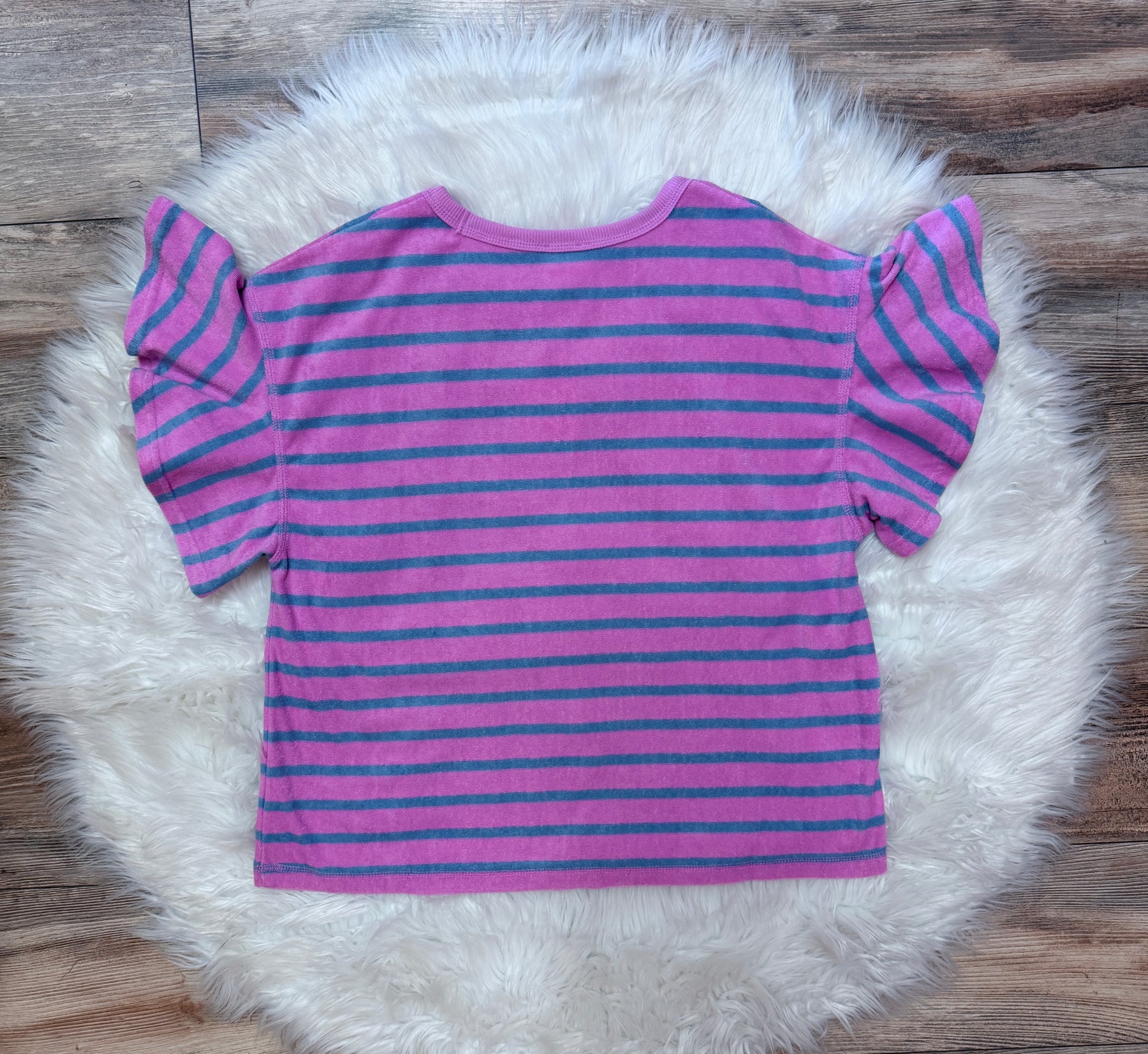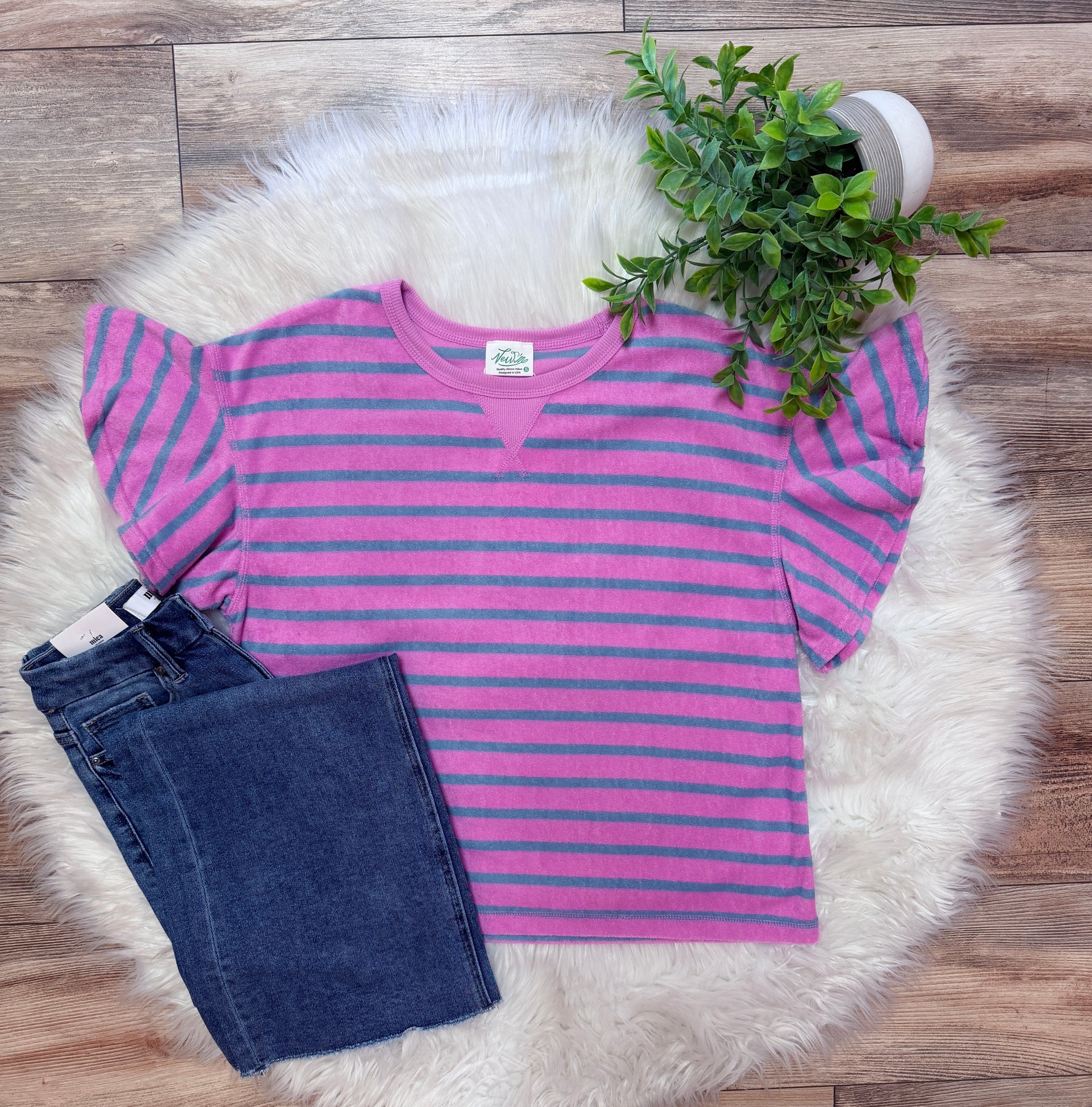 The Women’s Purple Stripe Ruffle Sleeve Top combines a modern design with functional elegance. The ruffle sleeves provide a flattering silhouette, while the stripe pattern offers a visually appealing aesthetic. This top is suitable for various occasions, enhancing versatility in your wardrobe.