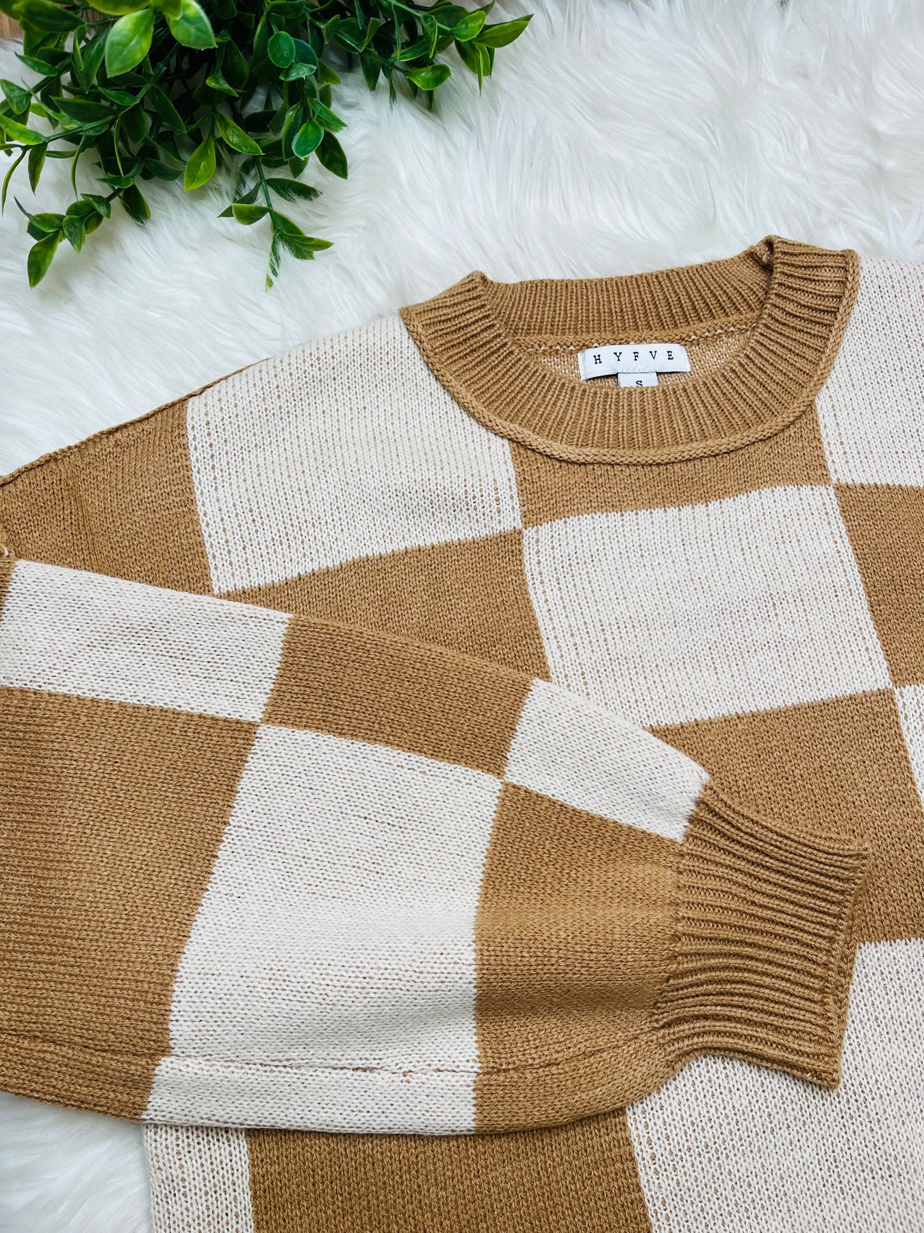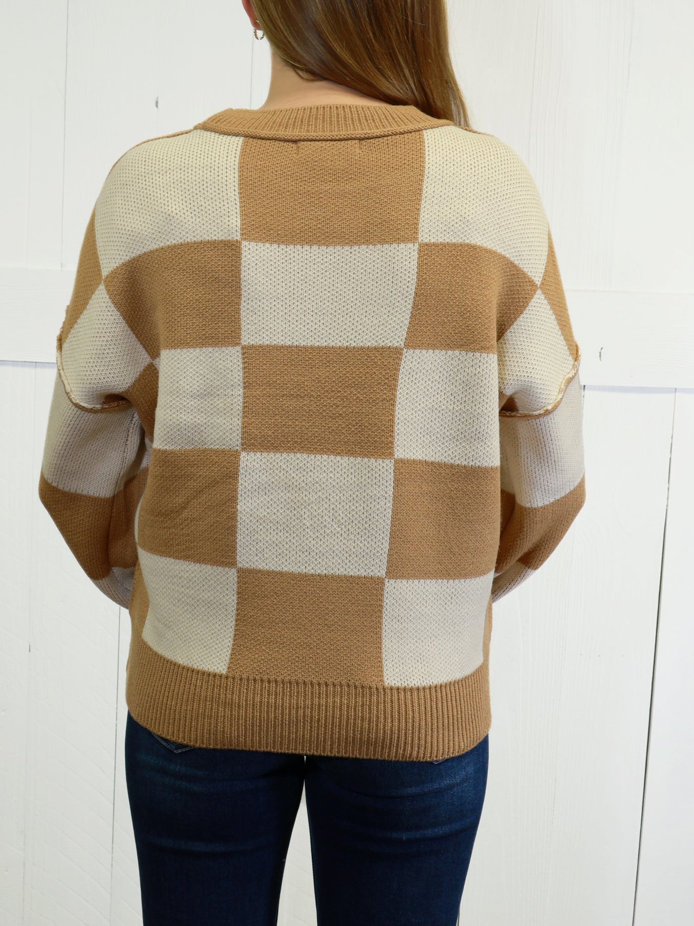 This Womens Beige Checkered Sweater is a versatile and stylish addition to any wardrobe. Made with high-quality material, it provides both comfort and durability. Perfect for both casual and formal occasions, this sweater is a must-have for fashion-forward women.
