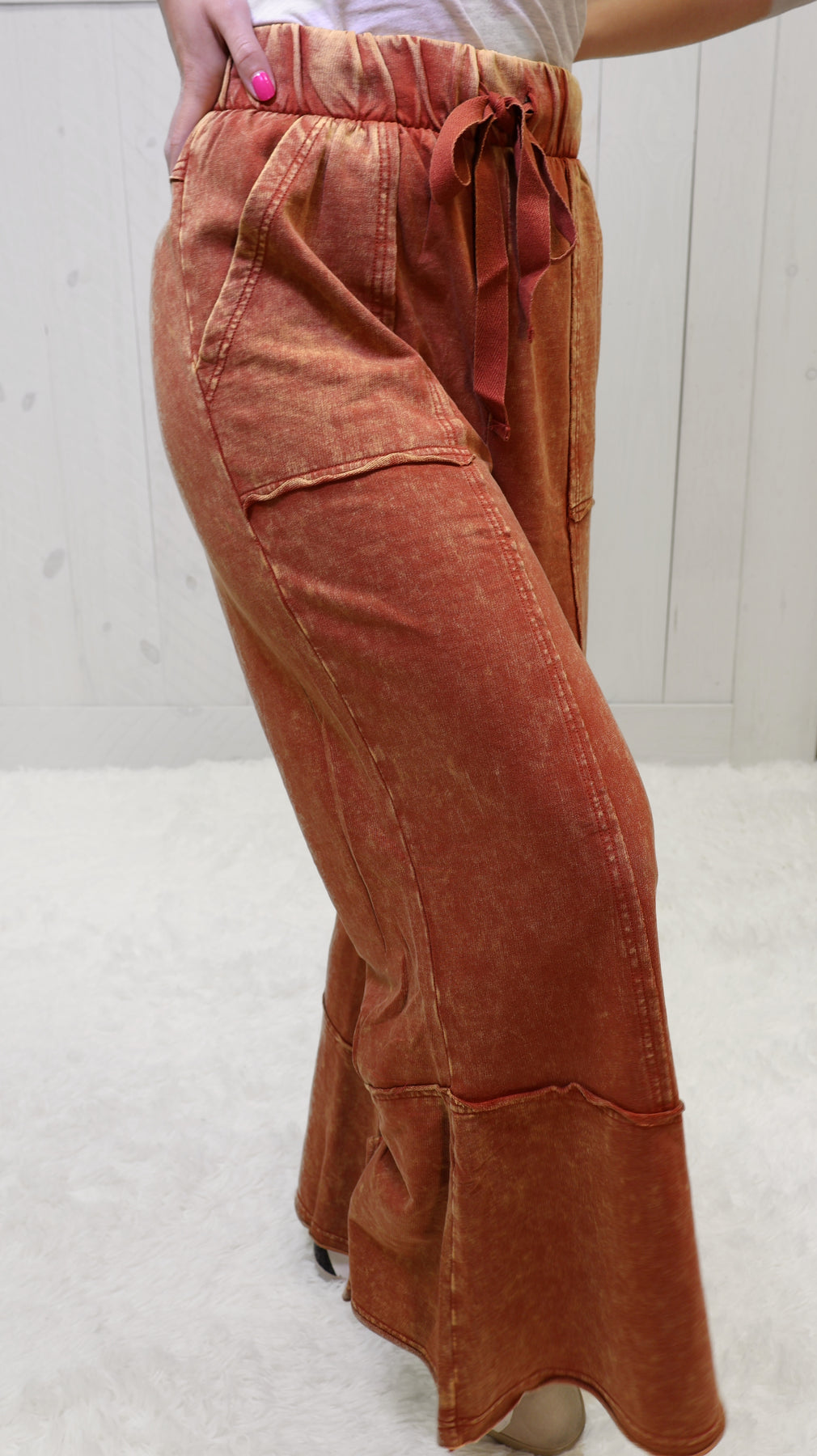 "Upgrade your wardrobe with our Rust Acid Wash Drawstring Pant. This versatile pant features a unique rust acid wash, adding a touch of edginess to any outfit. The adjustable drawstring waist offers a comfortable fit, while the relaxed silhouette allows for easy movement. Perfect for any occasion, from casual outings to dressed up events."