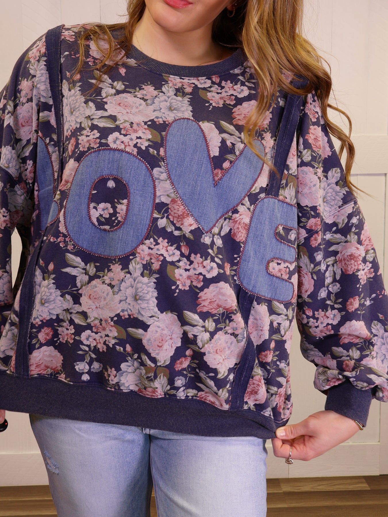 This vintage-inspired Easel top features intricate embroidery spelling out "LOVE" in colorful rose designs. Made with soft, comfortable fabric, this pullover top is perfect for adding a touch of feminine charm to any outfit. Its unique design and versatile style make it a must-have for any fashion-forward wardrobe.