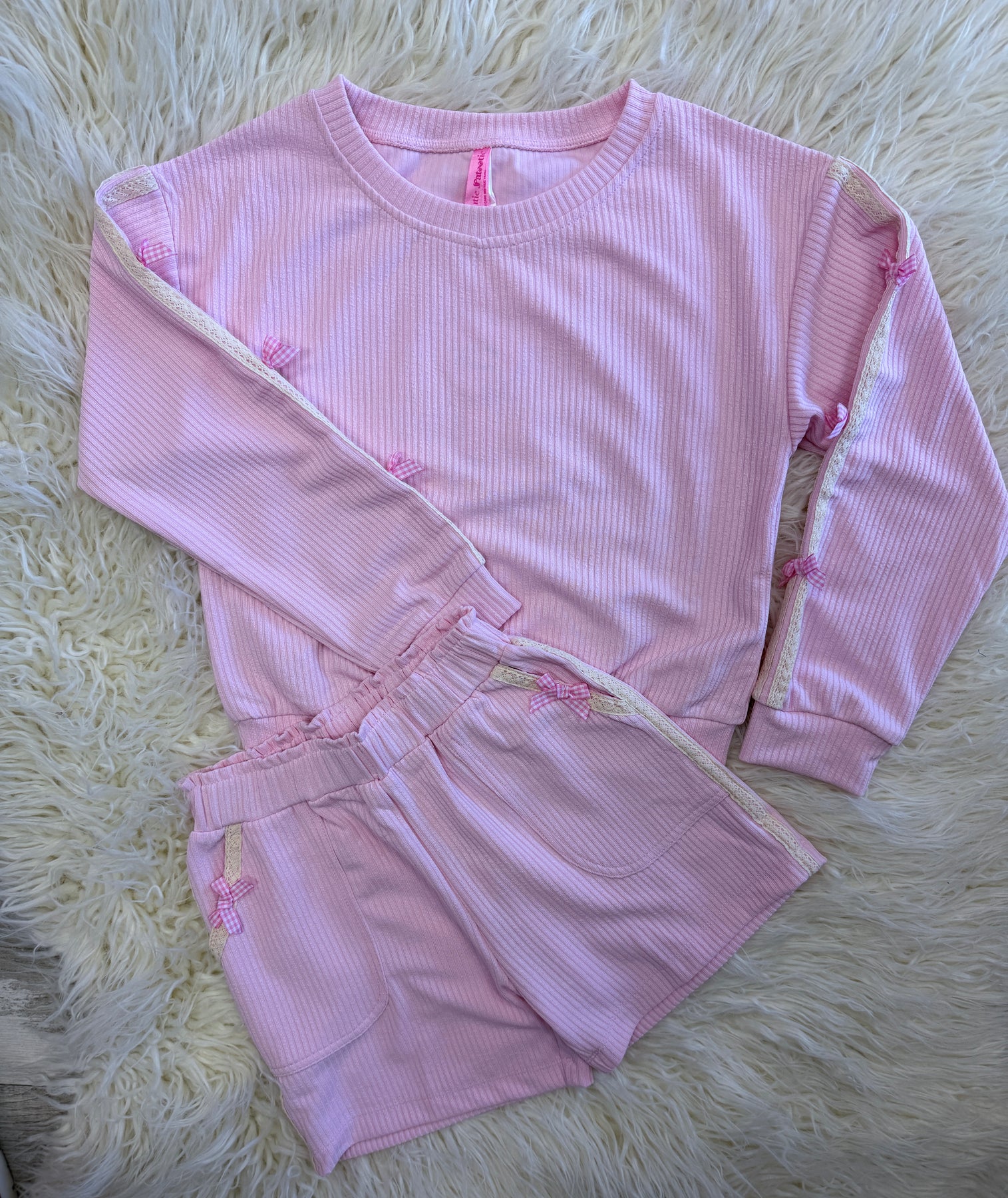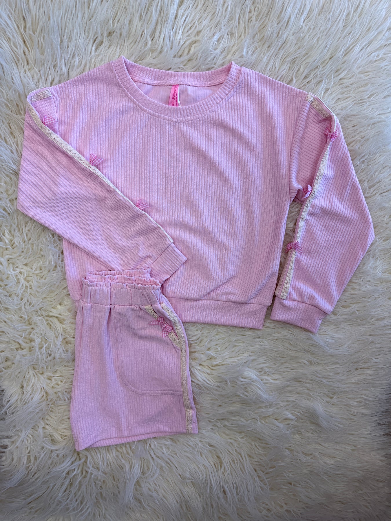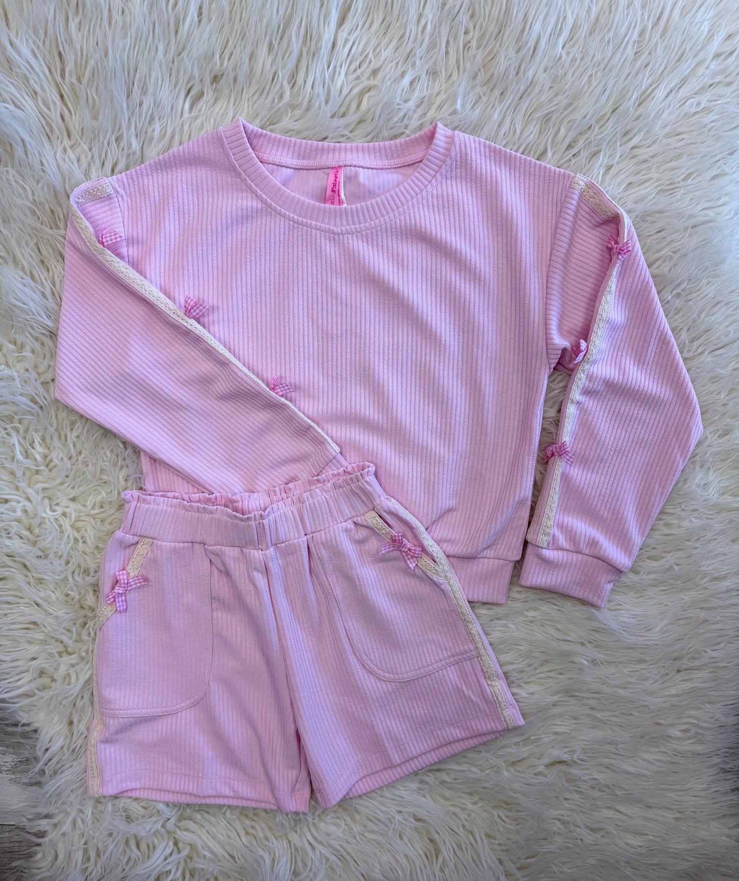 The Girls Ribbed Bow Short Set is a coordinated outfit designed for comfort and style. Featuring a ribbed texture, this set promotes breathability and ease of movement. Ideal for warm weather, it offers versatility for various casual occasions, making it a practical choice for everyday wear.