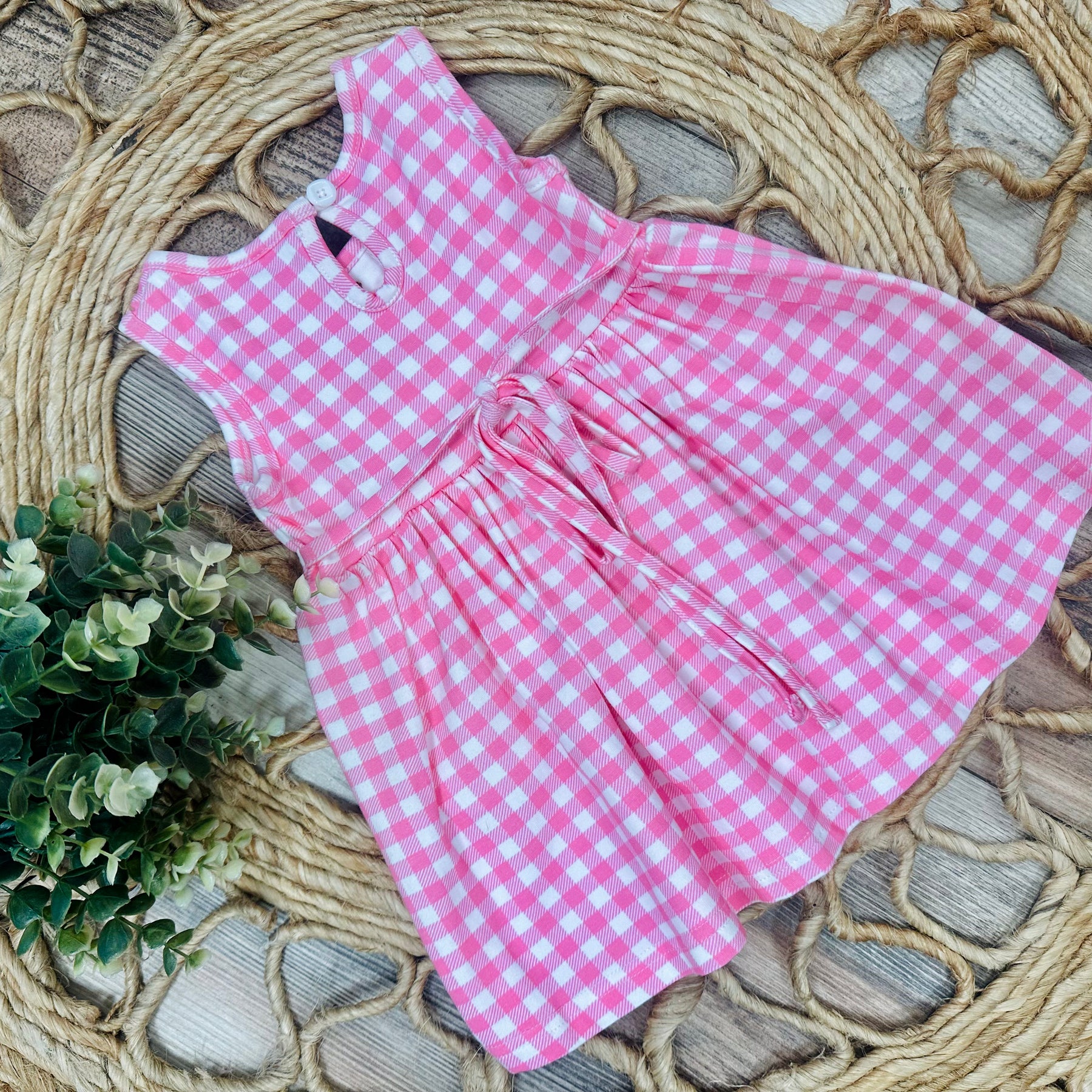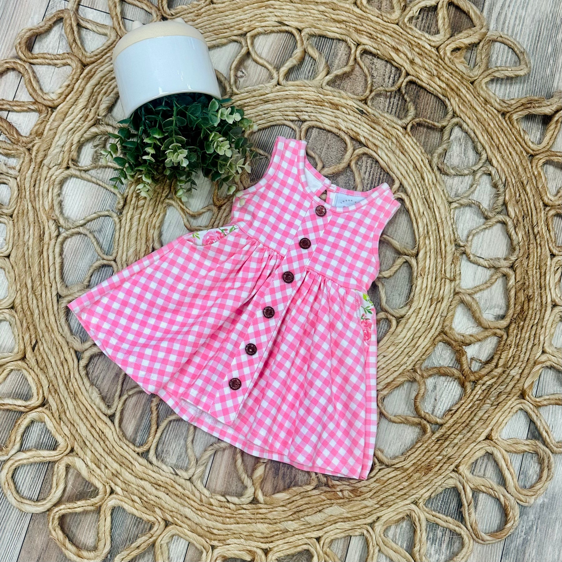 The Girls Swoon Baby Sleeveless Pink Plaid Dress integrates an exterior plaid pattern with a floral print accent in the pocket. This design choice not only enhances visual interest but also promotes individuality in style. The absence of sleeves ensures comfort and ease of movement, ideal for active play.