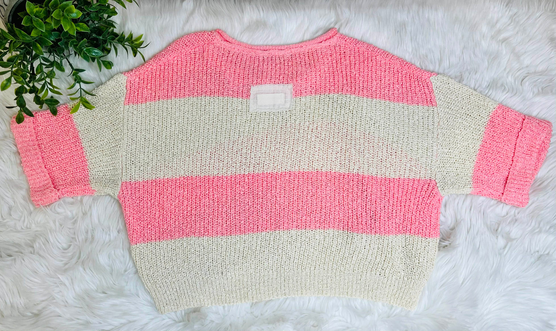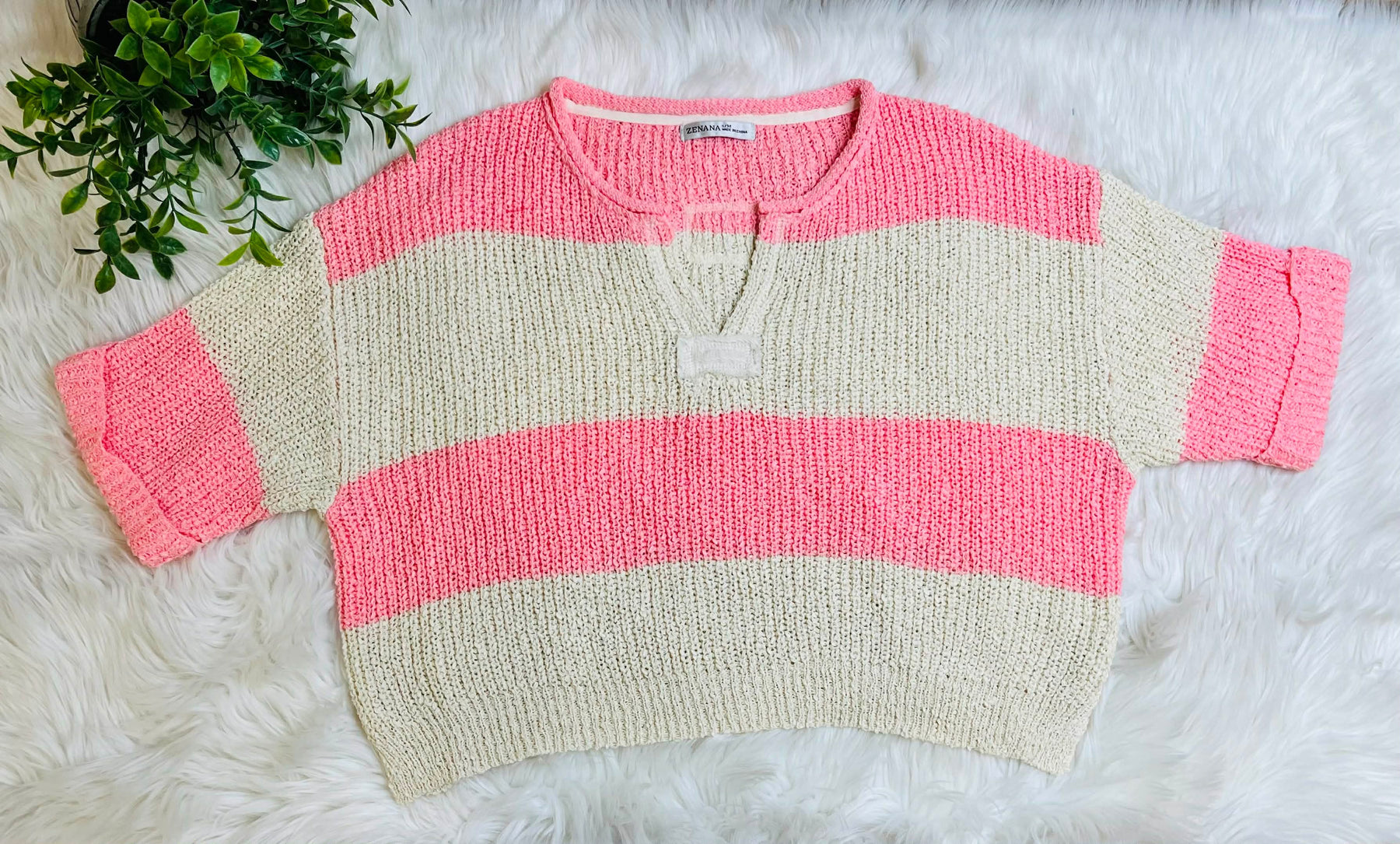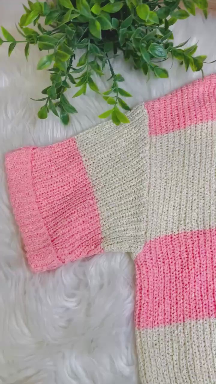 Women’s Split Neck Stripe Sweater Top Coral Pink